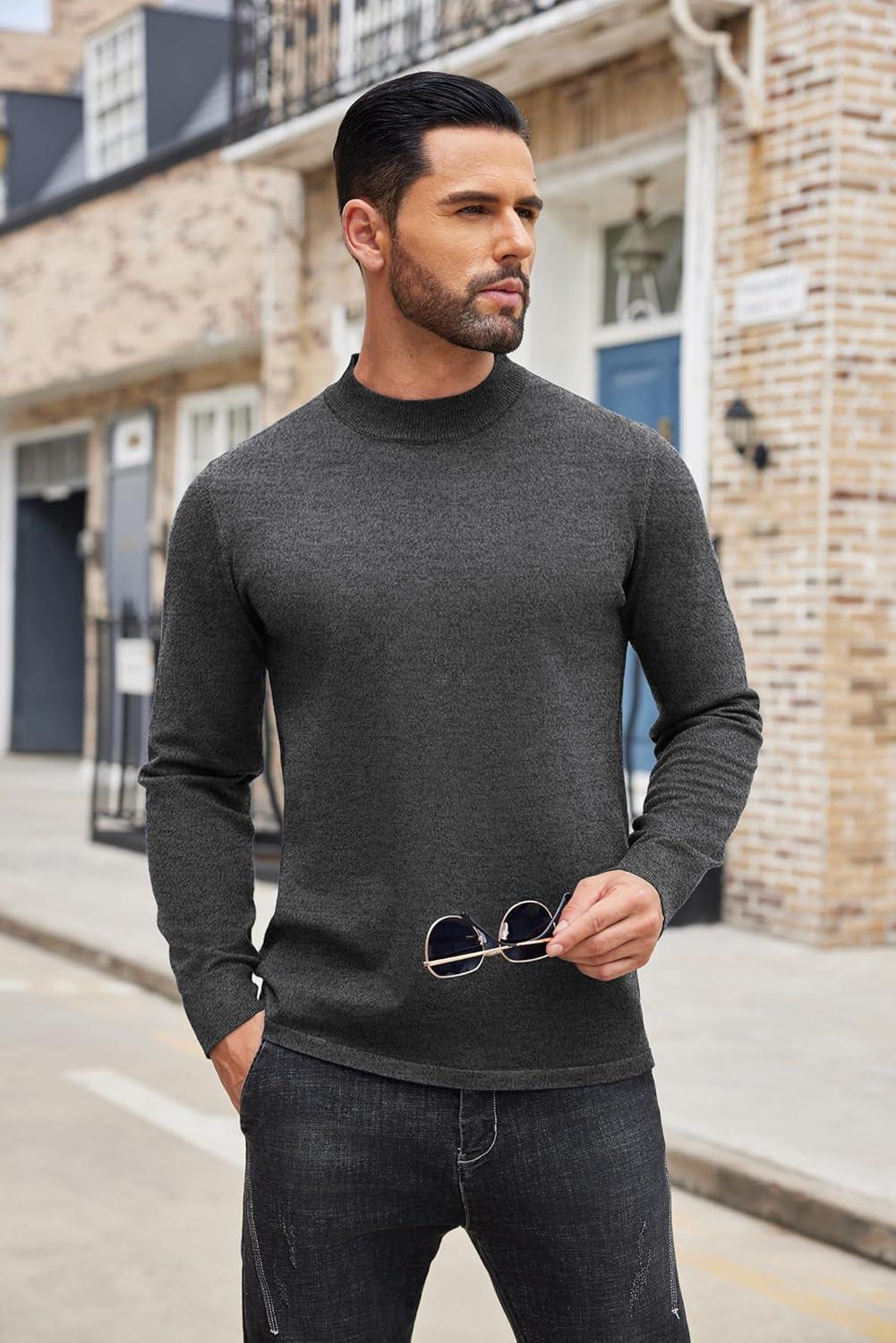 COOFANDY Men's Mock Turtleneck Long Sleeve T Shirts Basic Casual Knitted Half Neck Thermal Lightweight Pullover Sweater(Grey)