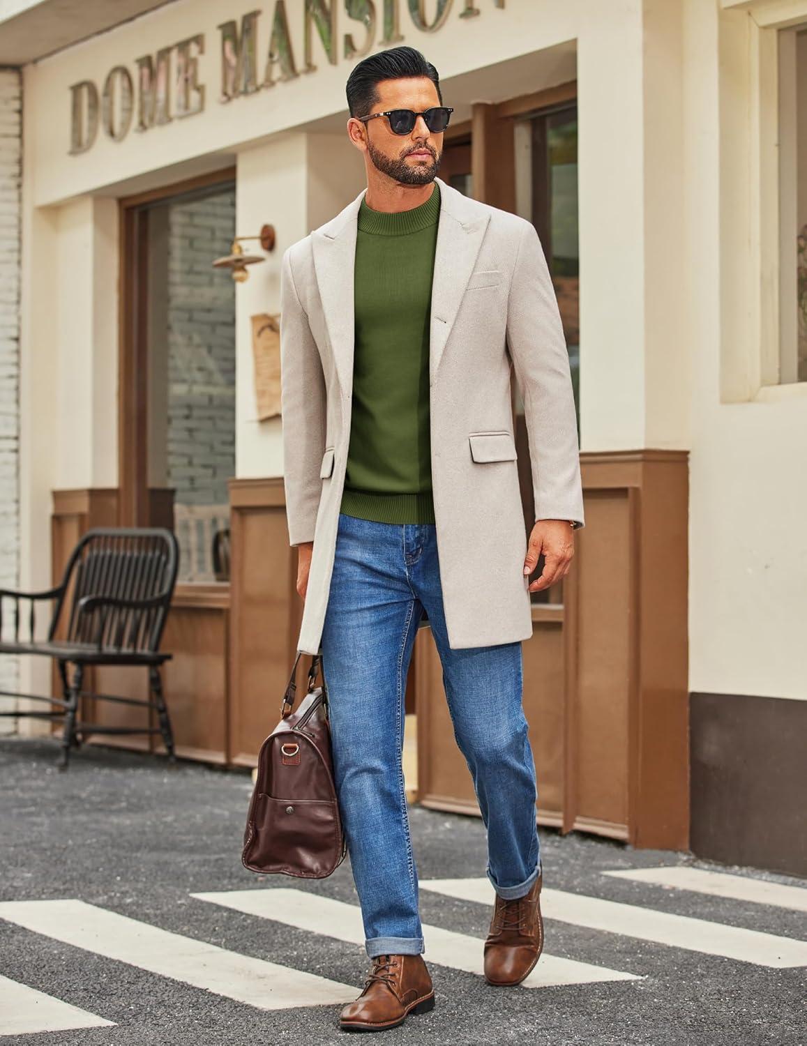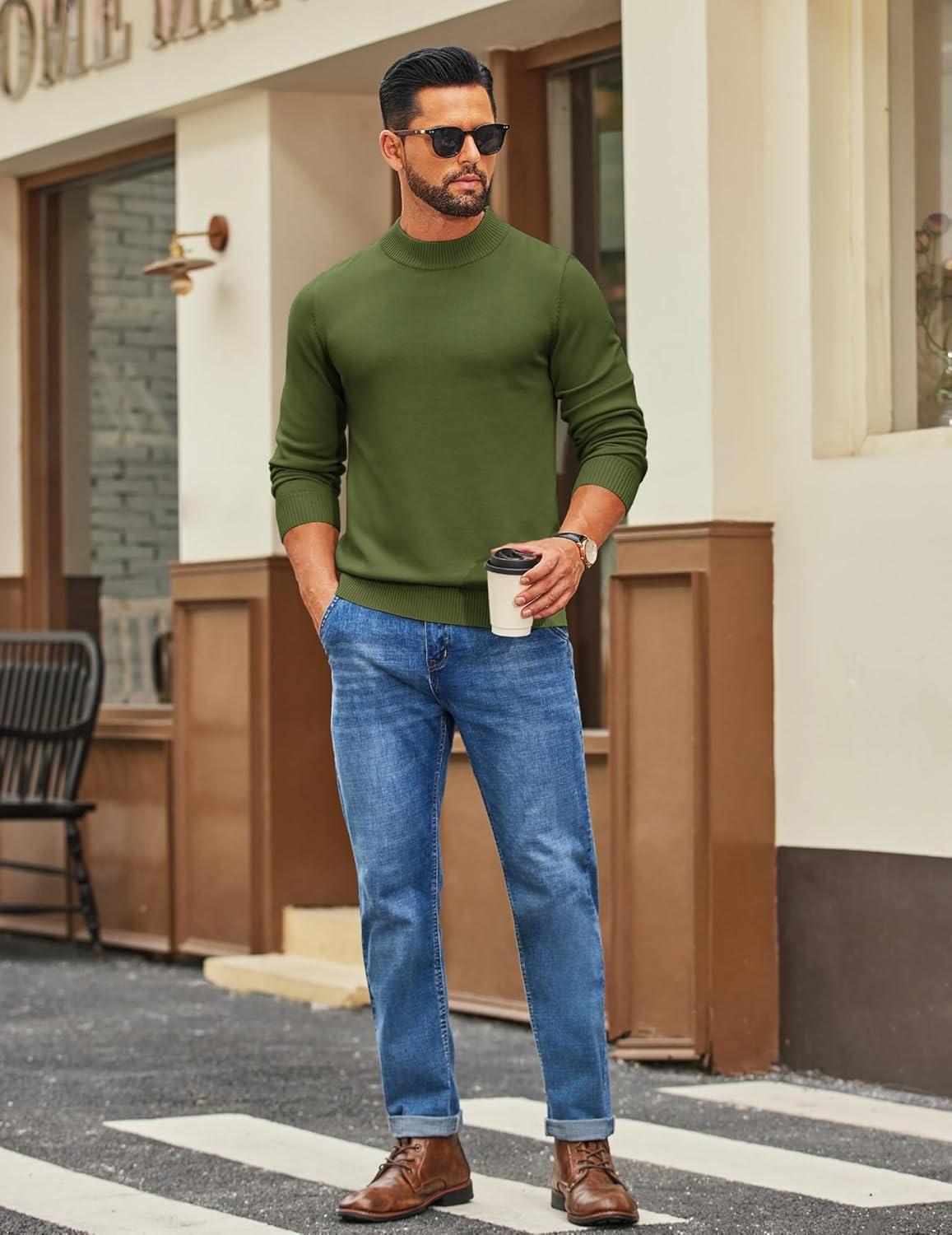 COOFANDY Men’s Mock Turtleneck Ribbed Knit Pullover Sweater Casual Lightweight Slim fit Dress Sweater(Army Green)
