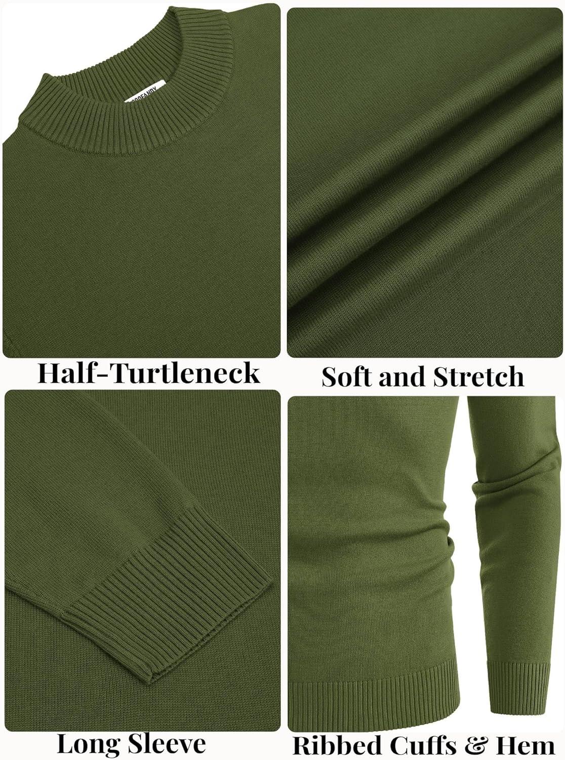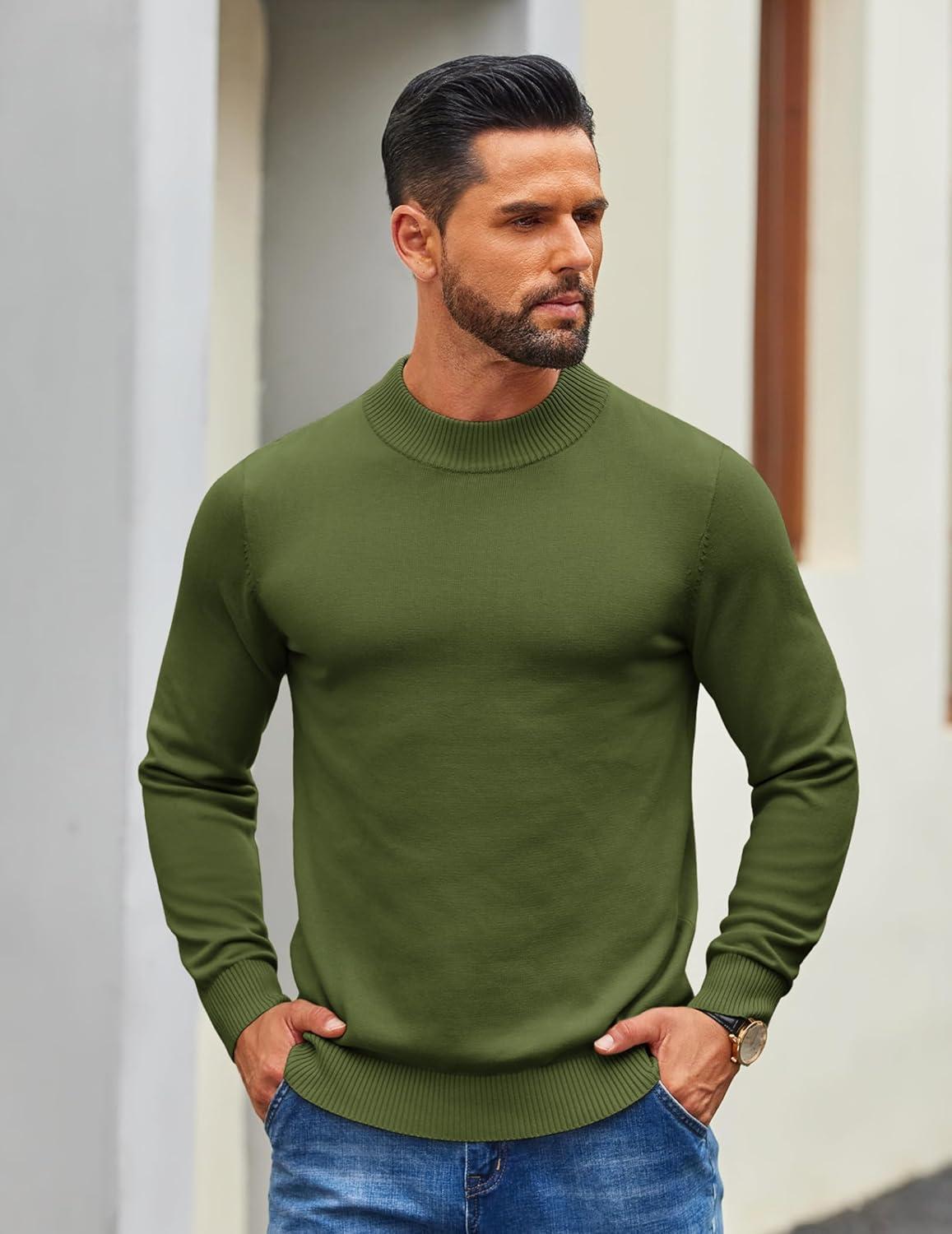 COOFANDY Men's Mock Turtleneck Ribbed Knit Pullover Sweater Casual Lightweight Slim fit Dress Sweater(Army Green)