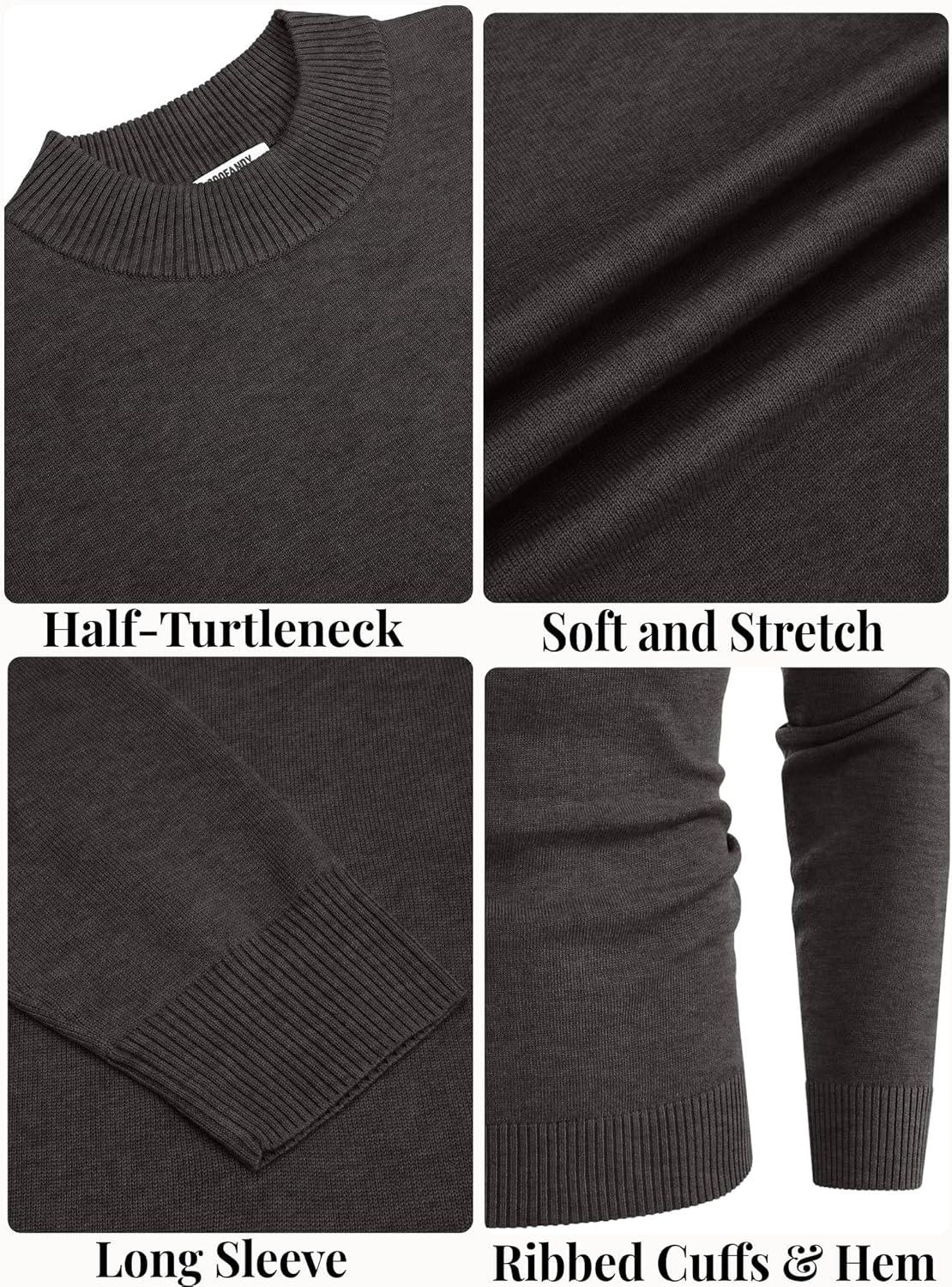 COOFANDY Men's Mock Turtleneck Ribbed Knit Pullover Sweater Casual Lightweight Slim fit Dress Sweater(Dark Grey)