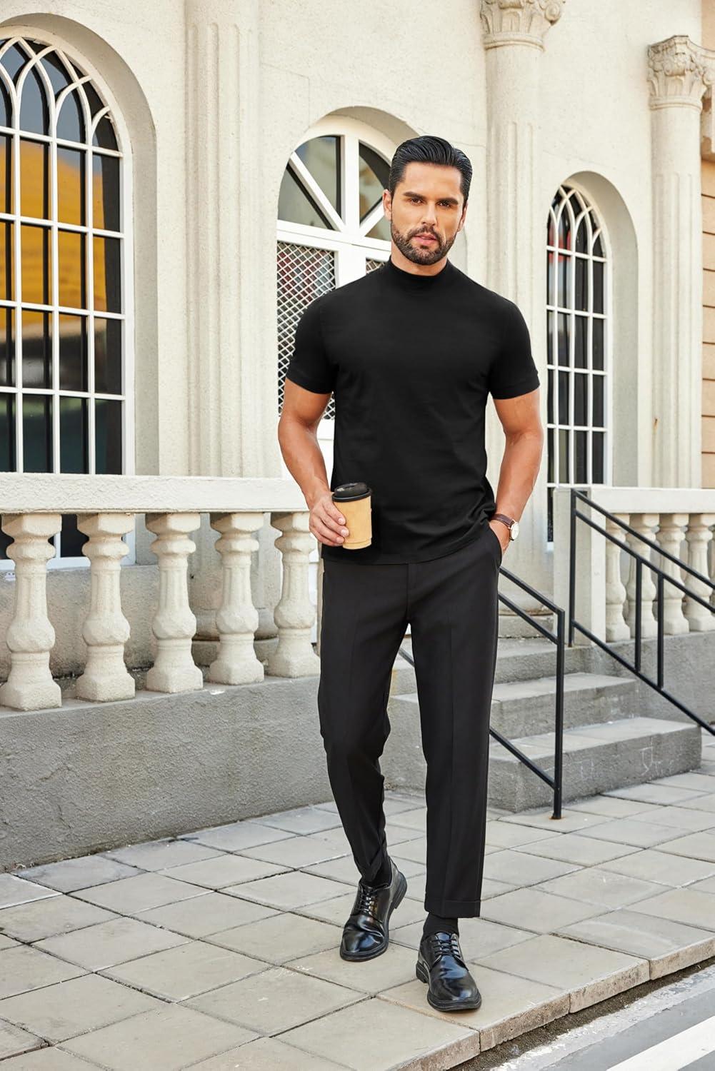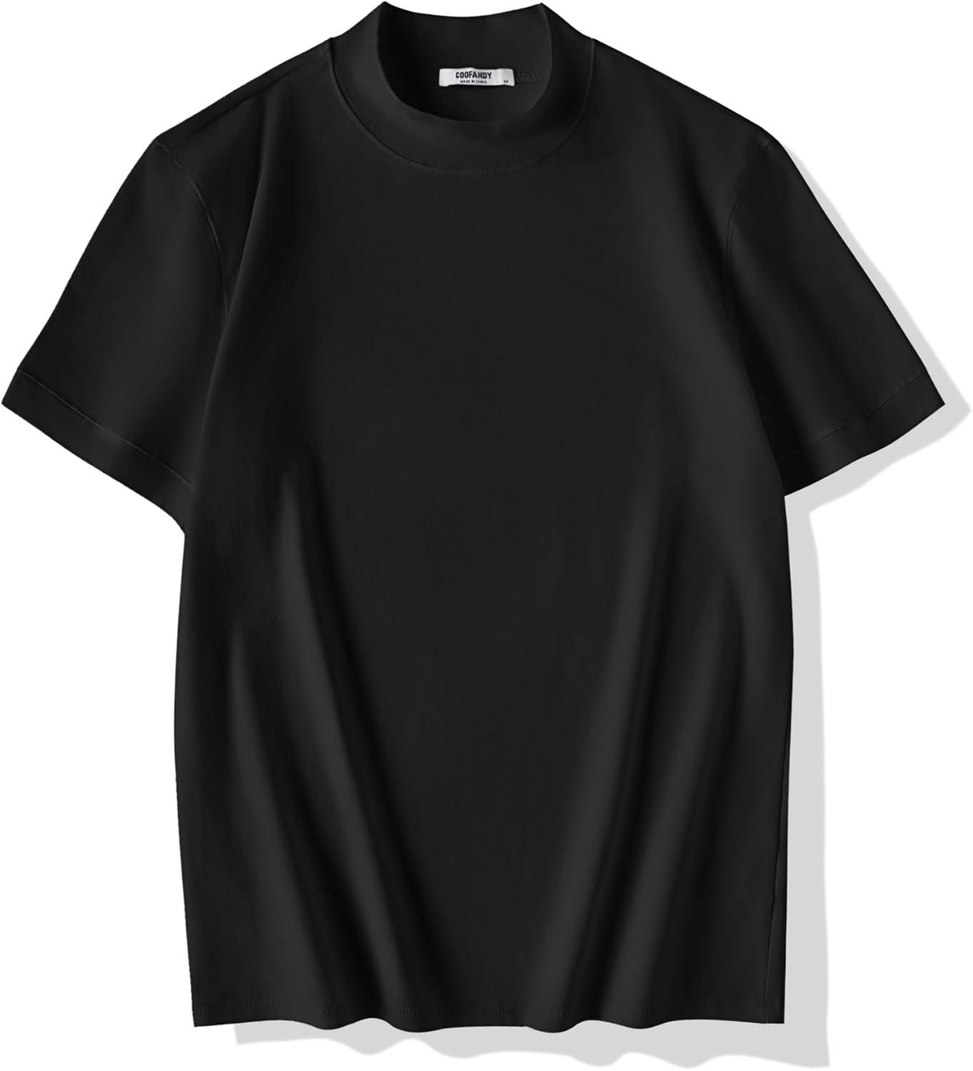 COOFANDY Mens Mock Turtleneck Shirts Casual Premium Cotton Short Sleeve Shirt 2025 Basic Half Neck T-Shirts(Black)