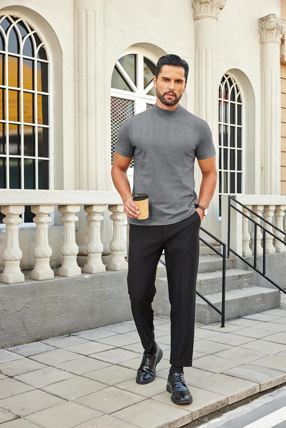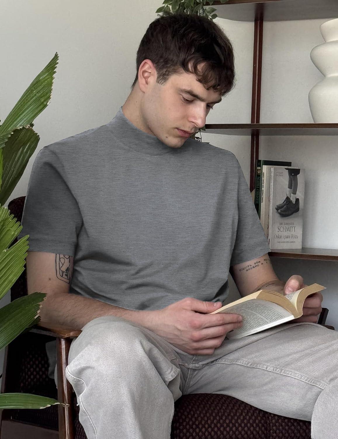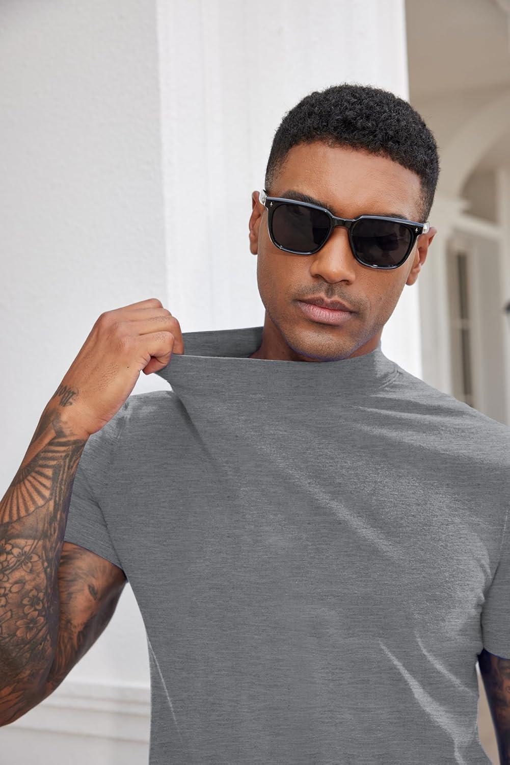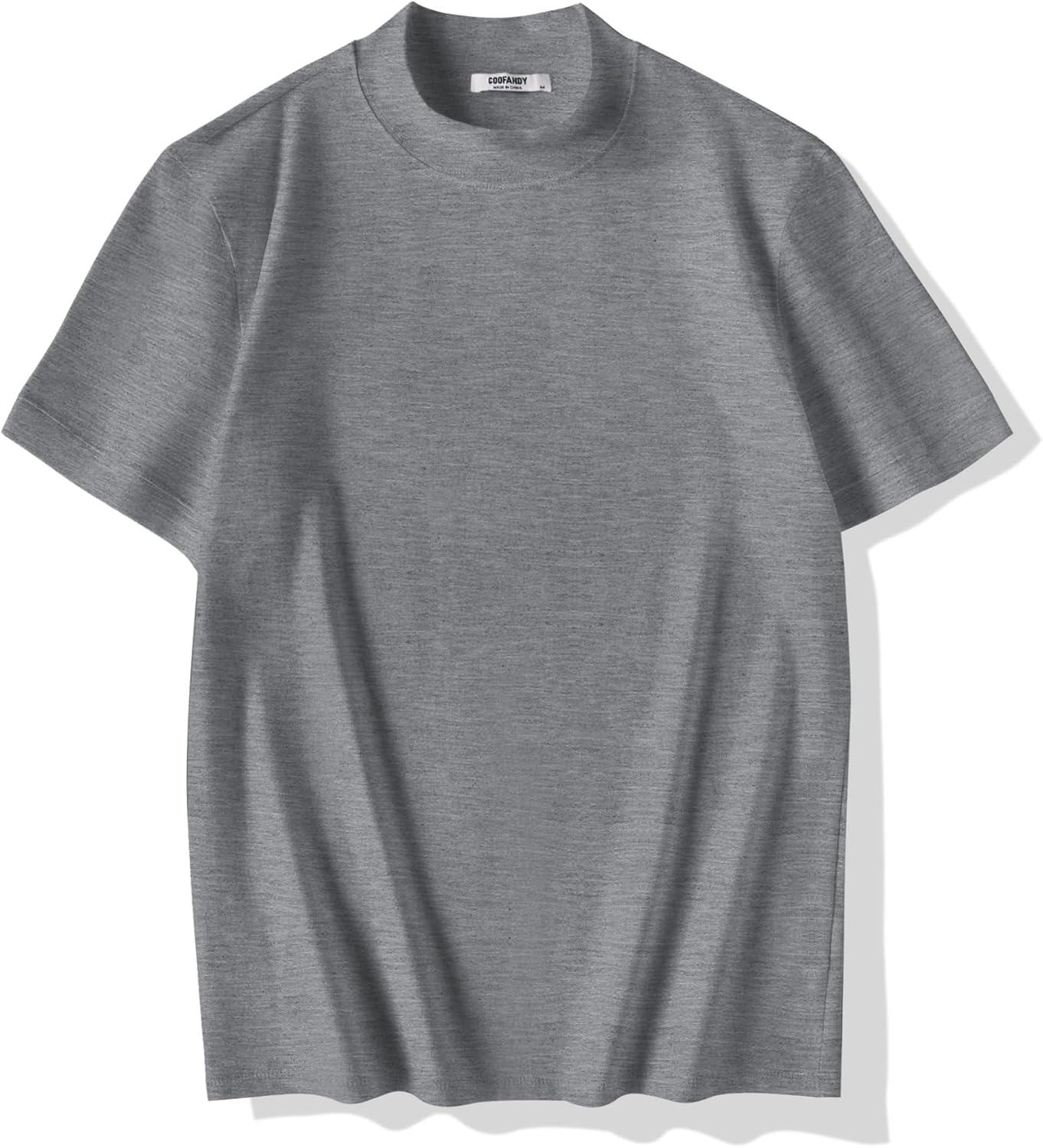 COOFANDY Mens Mock Turtleneck Shirts Casual Premium Cotton Short Sleeve Shirt 2025 Basic Half Neck T-Shirts(Gray)