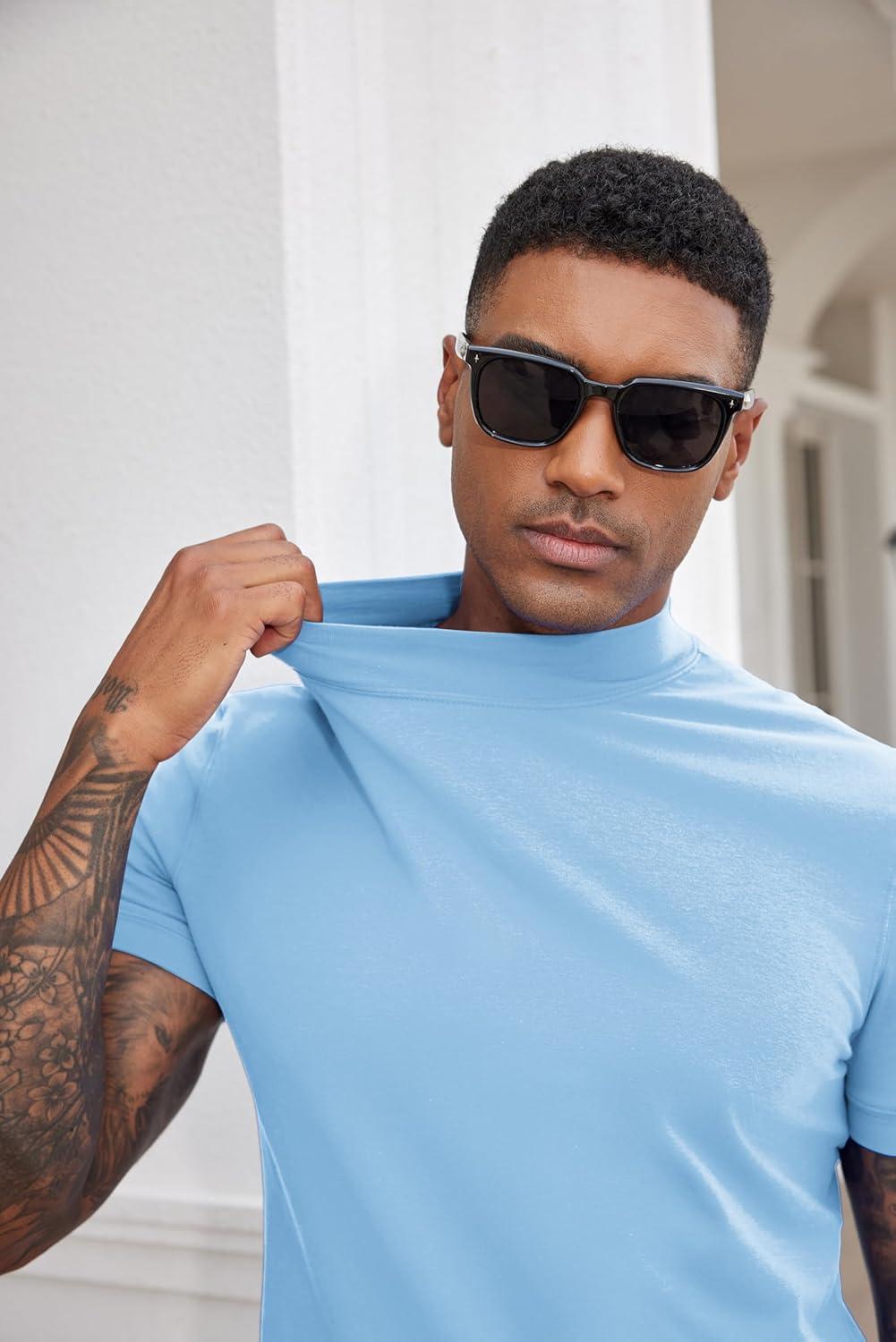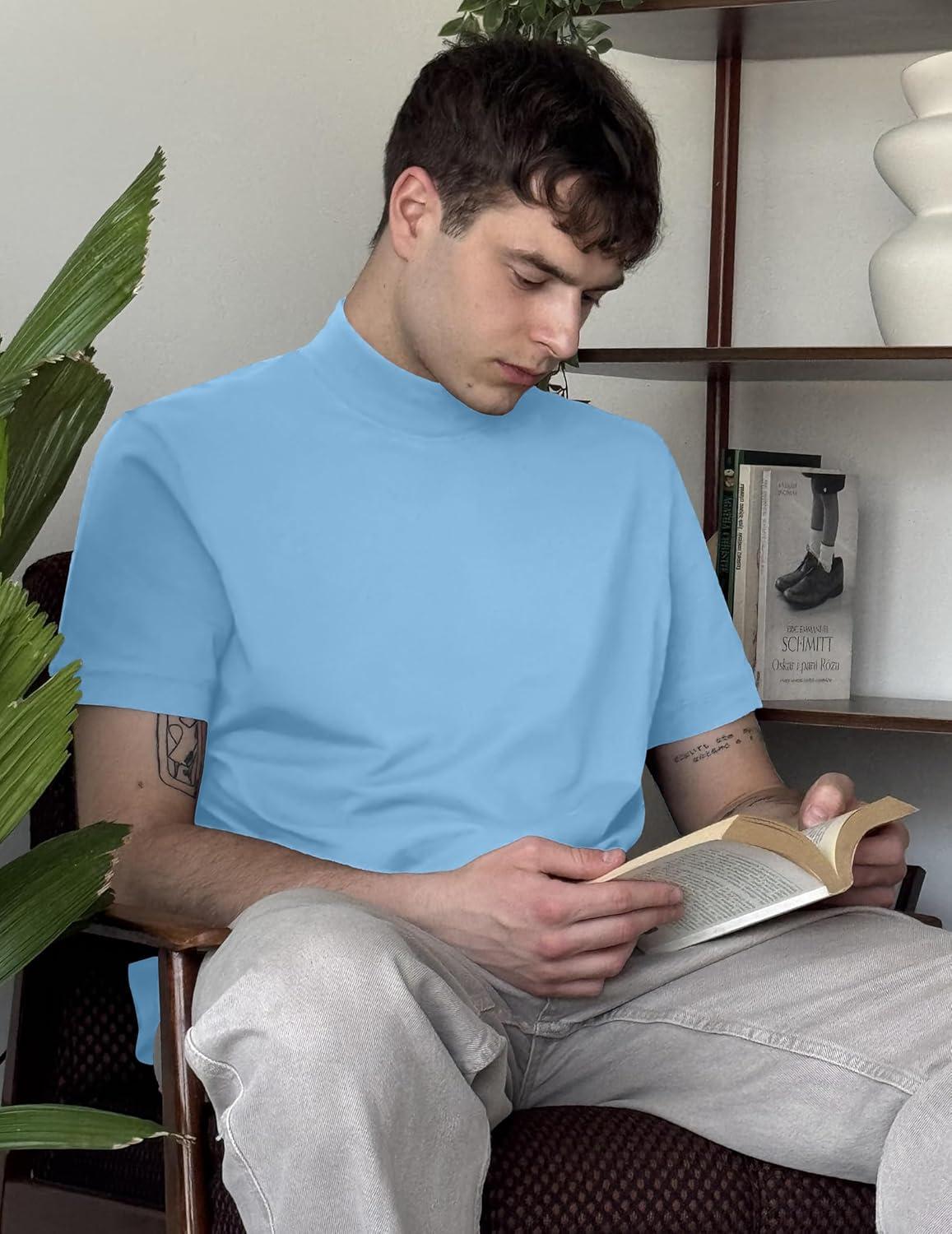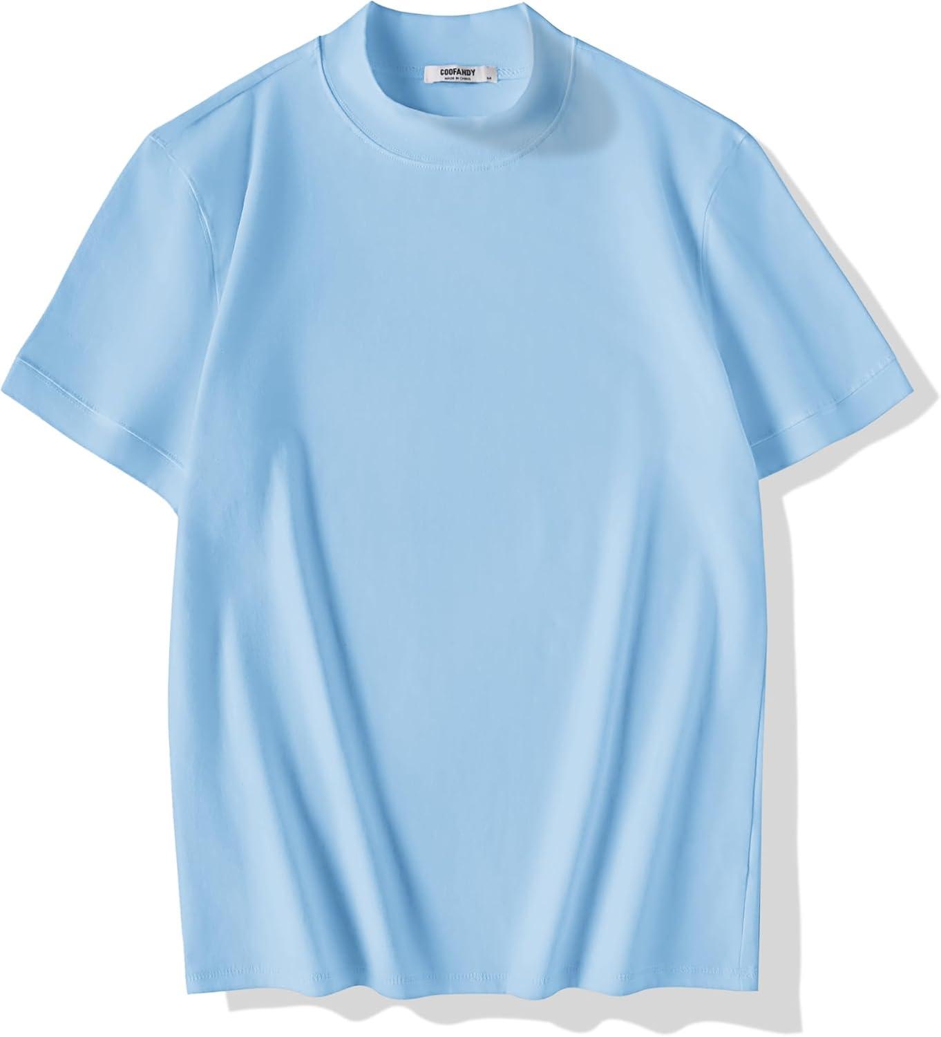 COOFANDY Mens Mock Turtleneck Shirts Casual Premium Cotton Short Sleeve Shirt 2025 Basic Half Neck T-Shirts(Light Blue)