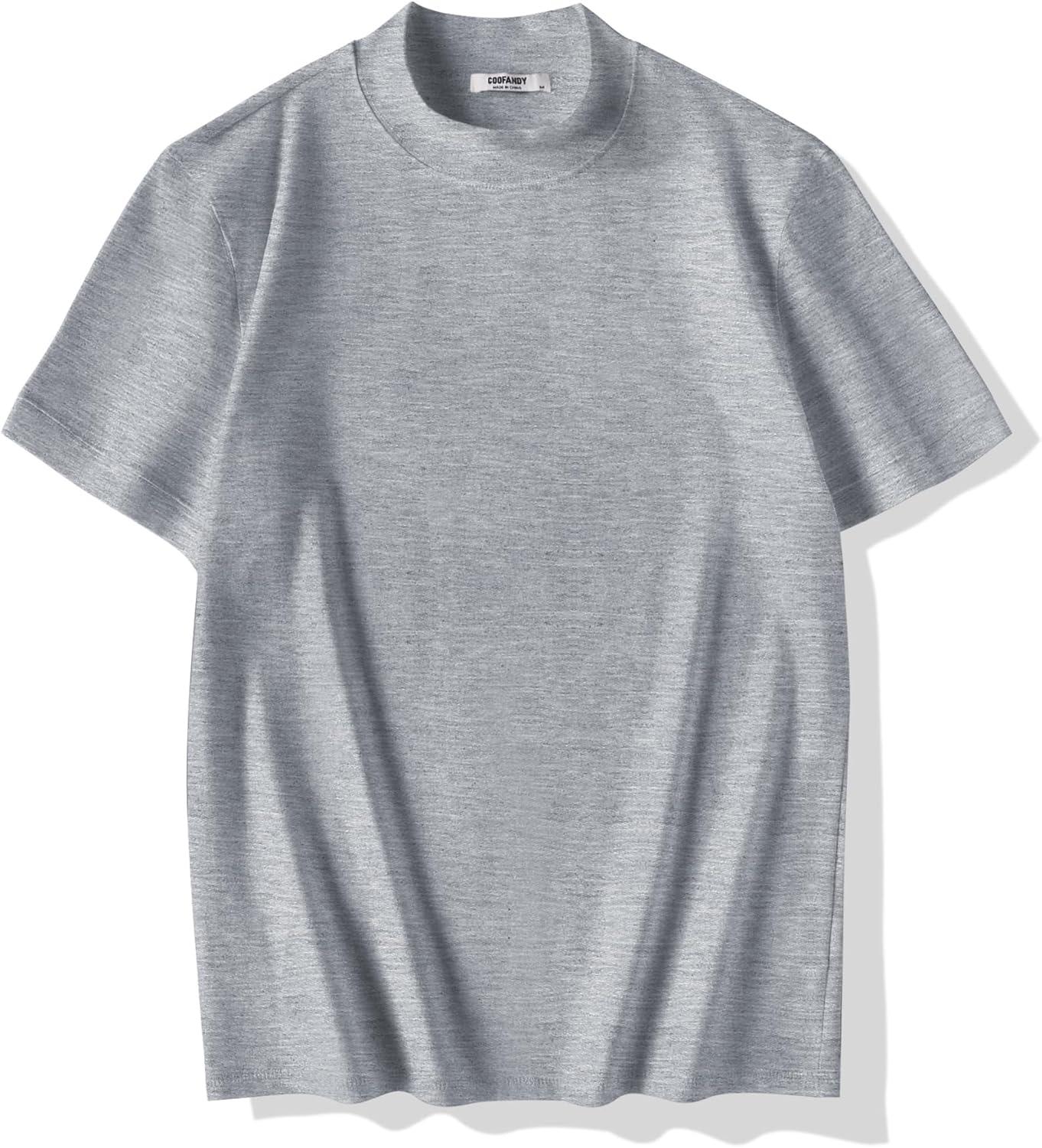 COOFANDY Mens Mock Turtleneck Shirts Casual Premium Cotton Short Sleeve Shirt 2025 Basic Half Neck T-Shirts(Light Gray)