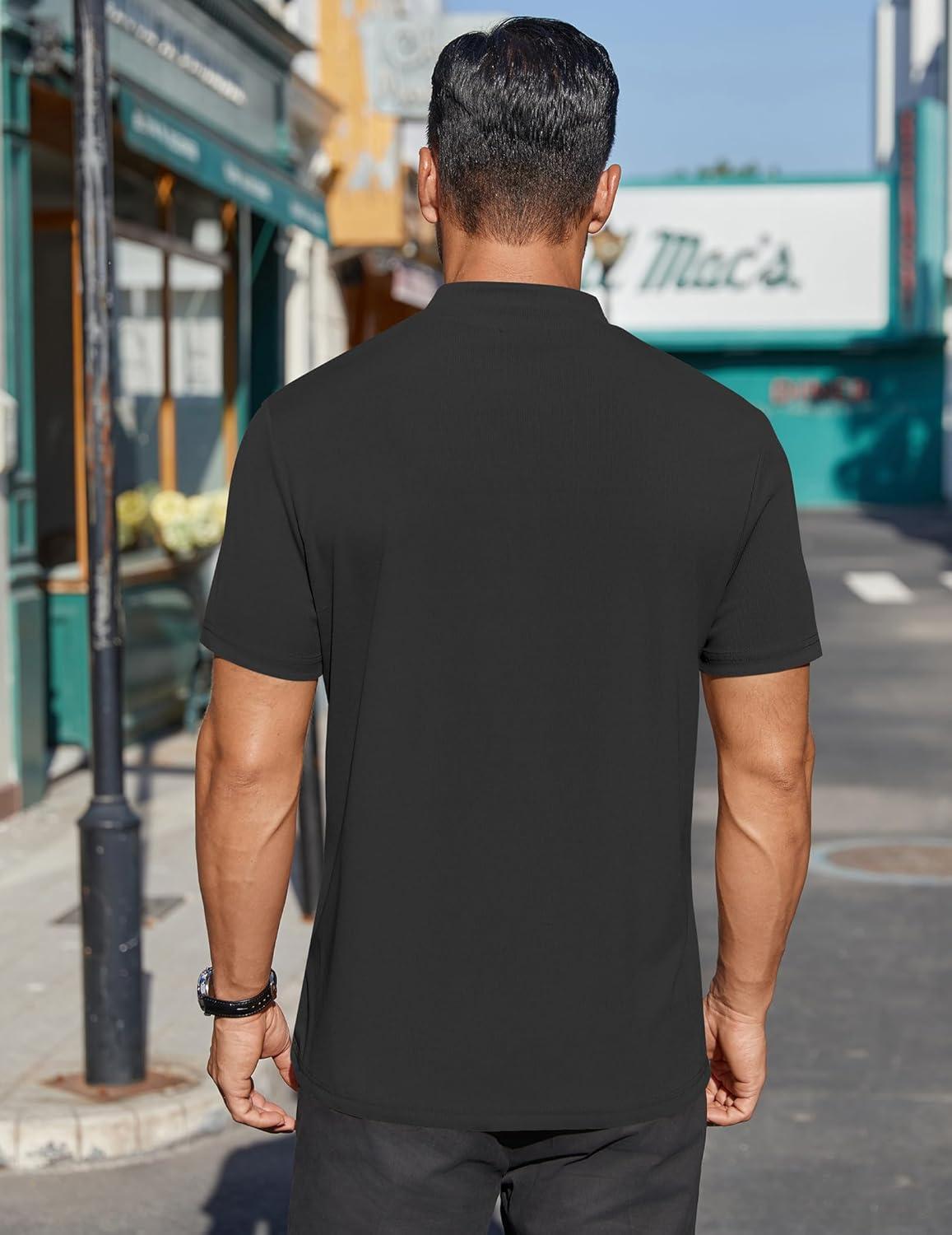 COOFANDY Mens Mock Turtleneck Shirts Short Sleeve Casual Basic T-Shirts Ribbed Solid Pullover Tops(Black)