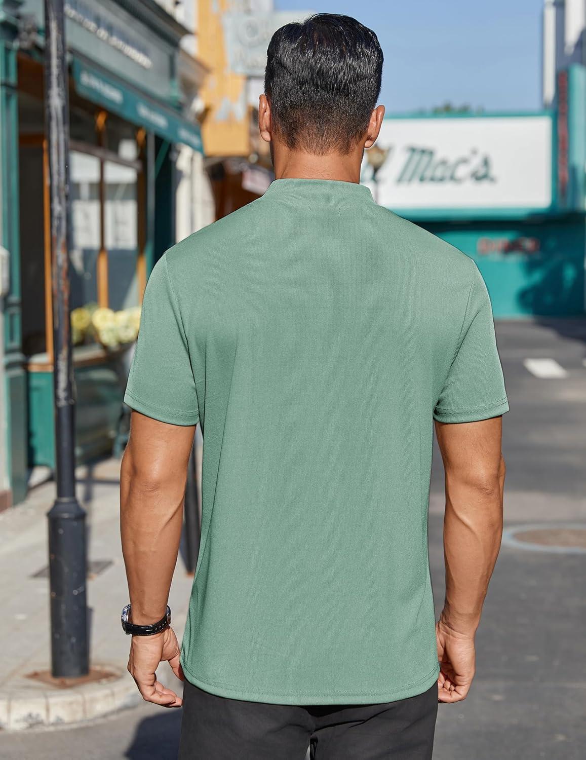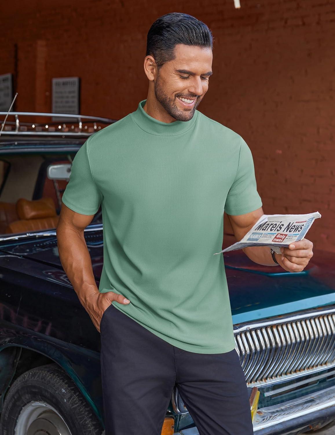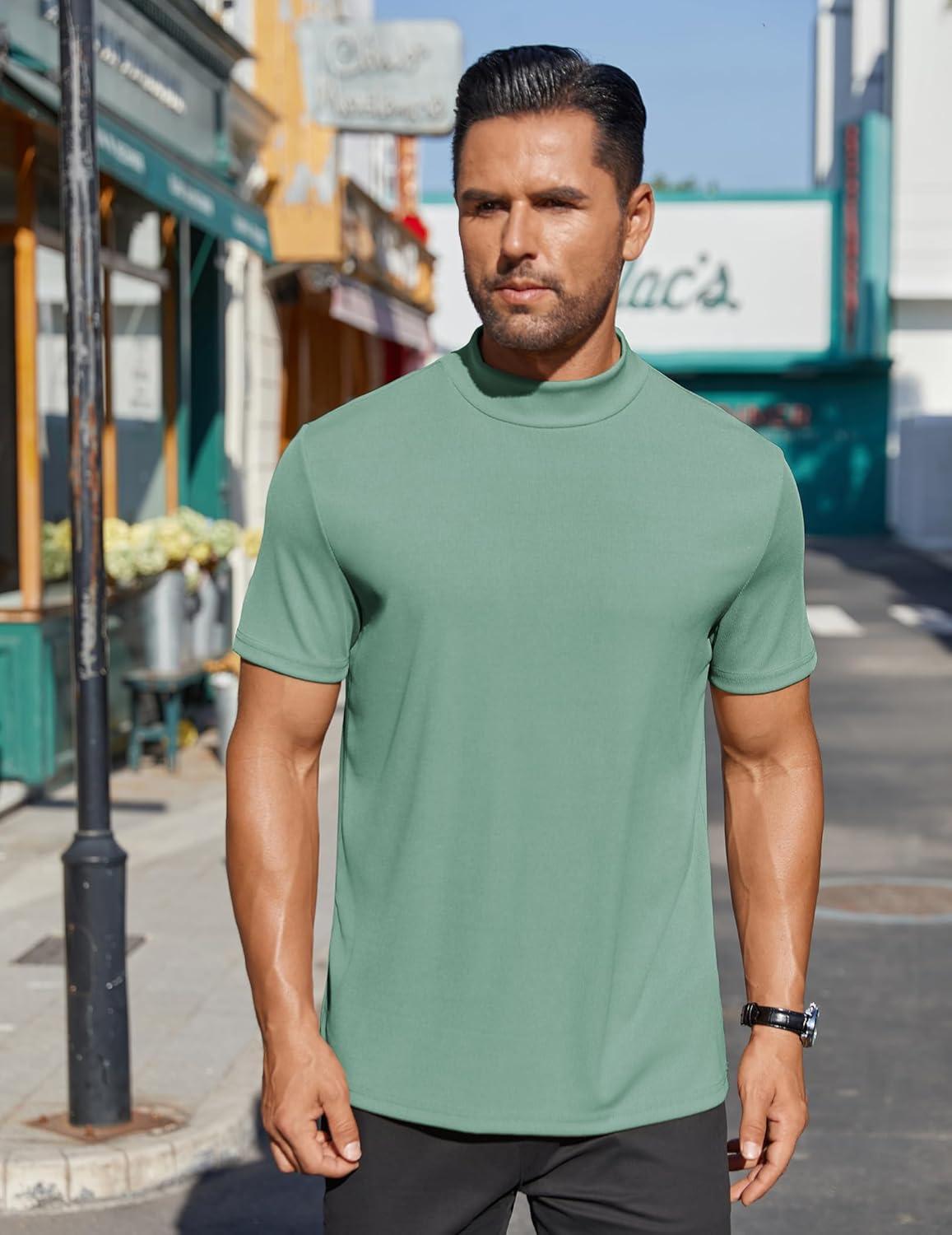 COOFANDY Mens Mock Turtleneck Shirts Short Sleeve Casual Basic T-Shirts Ribbed Solid Pullover Tops(Gray Green)