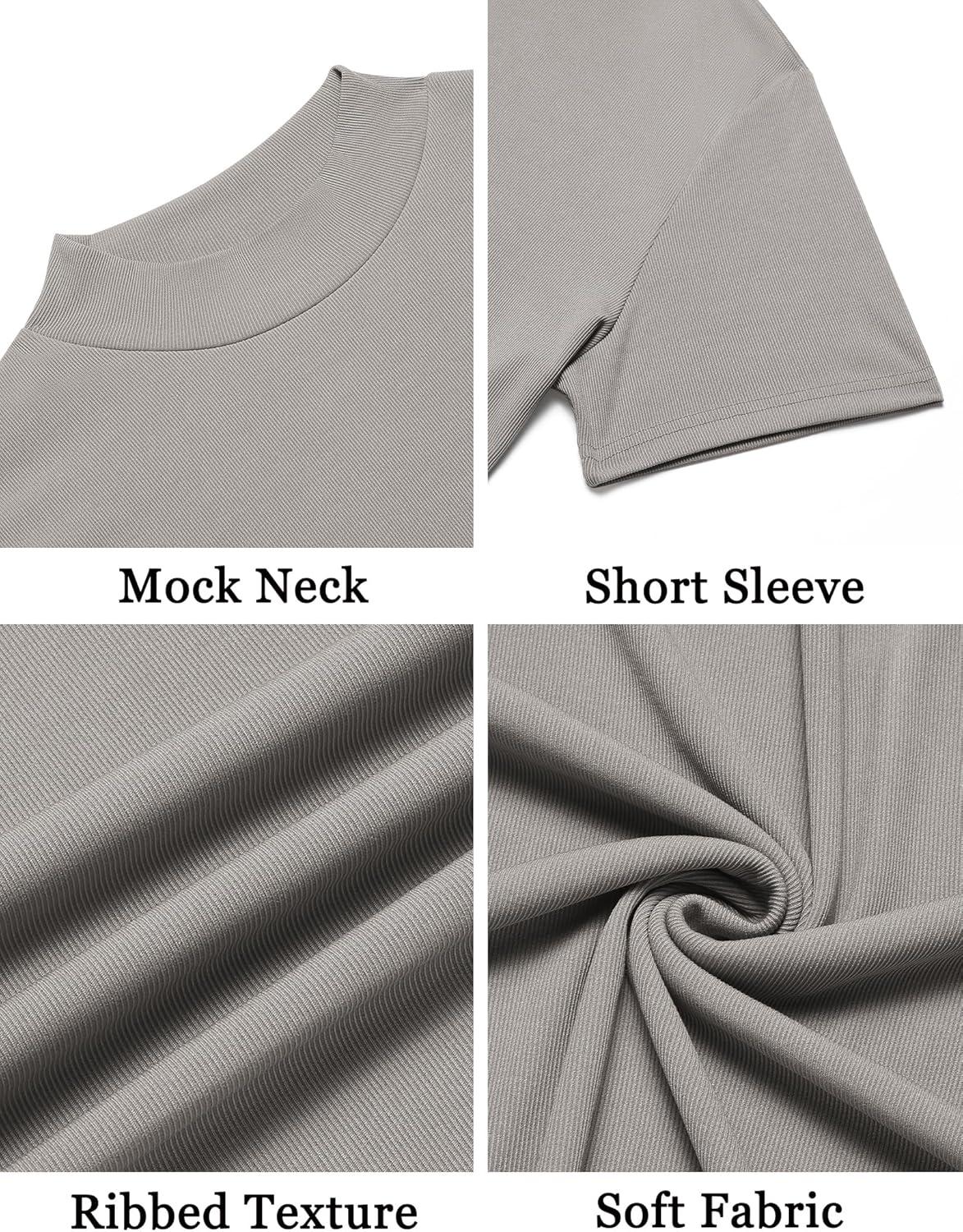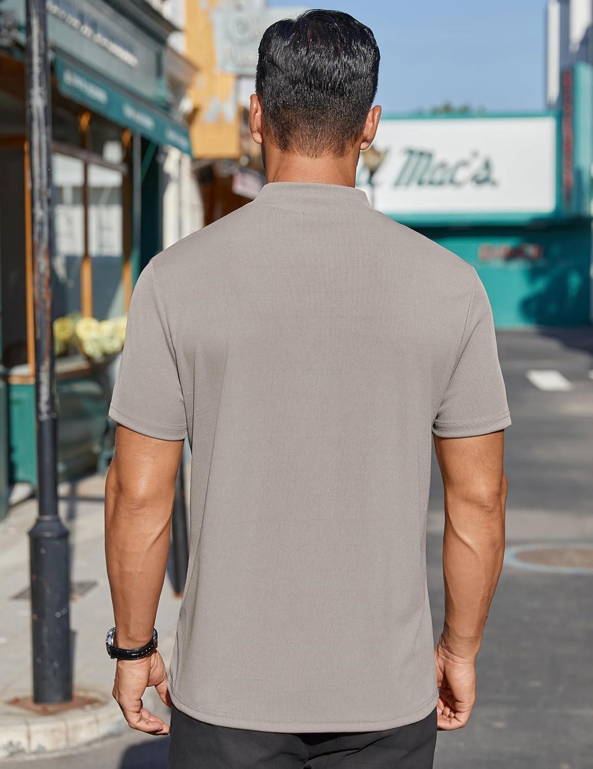 COOFANDY Mens Mock Turtleneck Shirts Short Sleeve Casual Basic T-Shirts Ribbed Solid Pullover Tops(Light Grey)