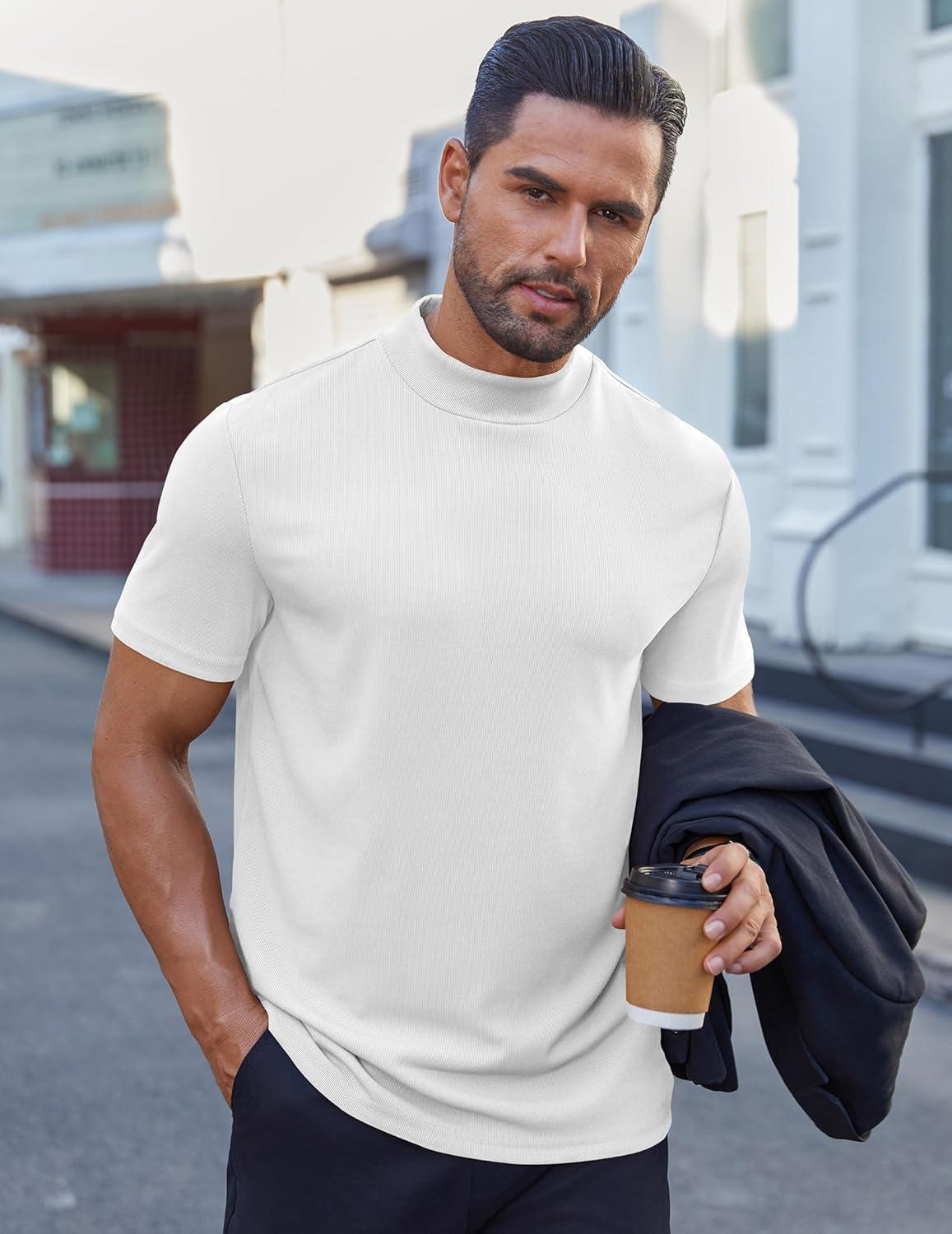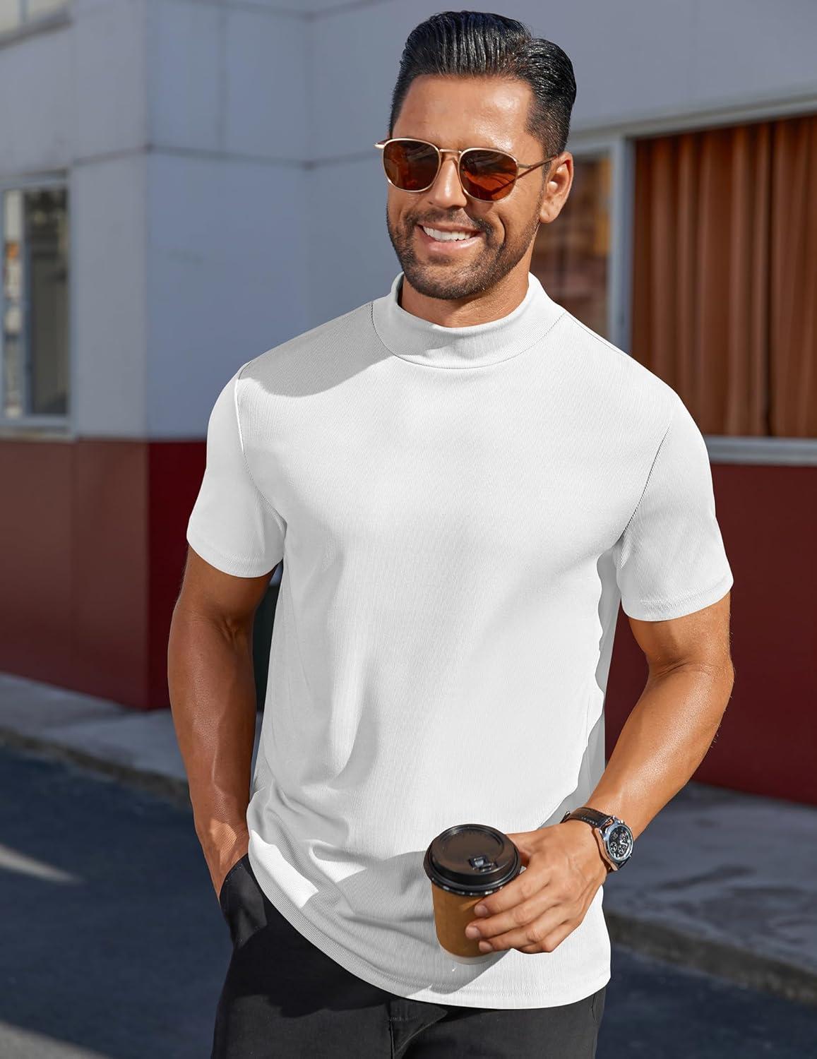 Don’t miss out on our limited-time offer: buy COOFANDY Mens Mock Turtleneck Shirts Short Sleeve Casual Basic T-Shirts Ribbed Solid Pullover Tops(White), get {accessory} free!
