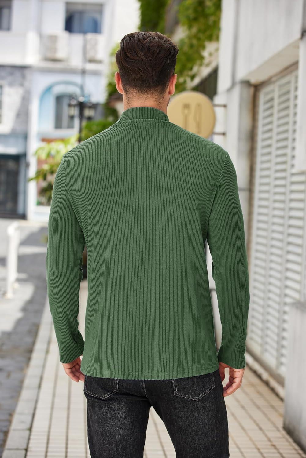 COOFANDY Men's Mock Turtleneck Sweater Long Sleeve Half Neck Pullover Thermal Casual Ribbed High Neck Pullover Sweater(Army Green)