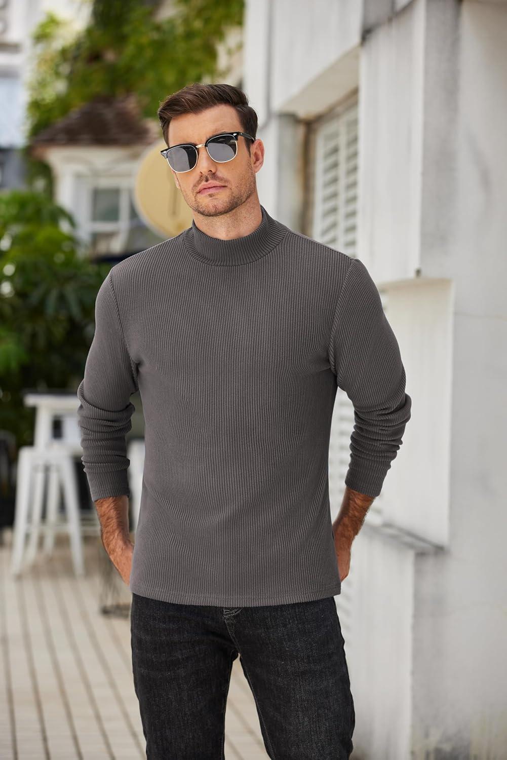 COOFANDY Men's Mock Turtleneck Sweater Long Sleeve Half Neck Pullover Thermal Casual Ribbed High Neck Pullover Sweater(Dark Gray)