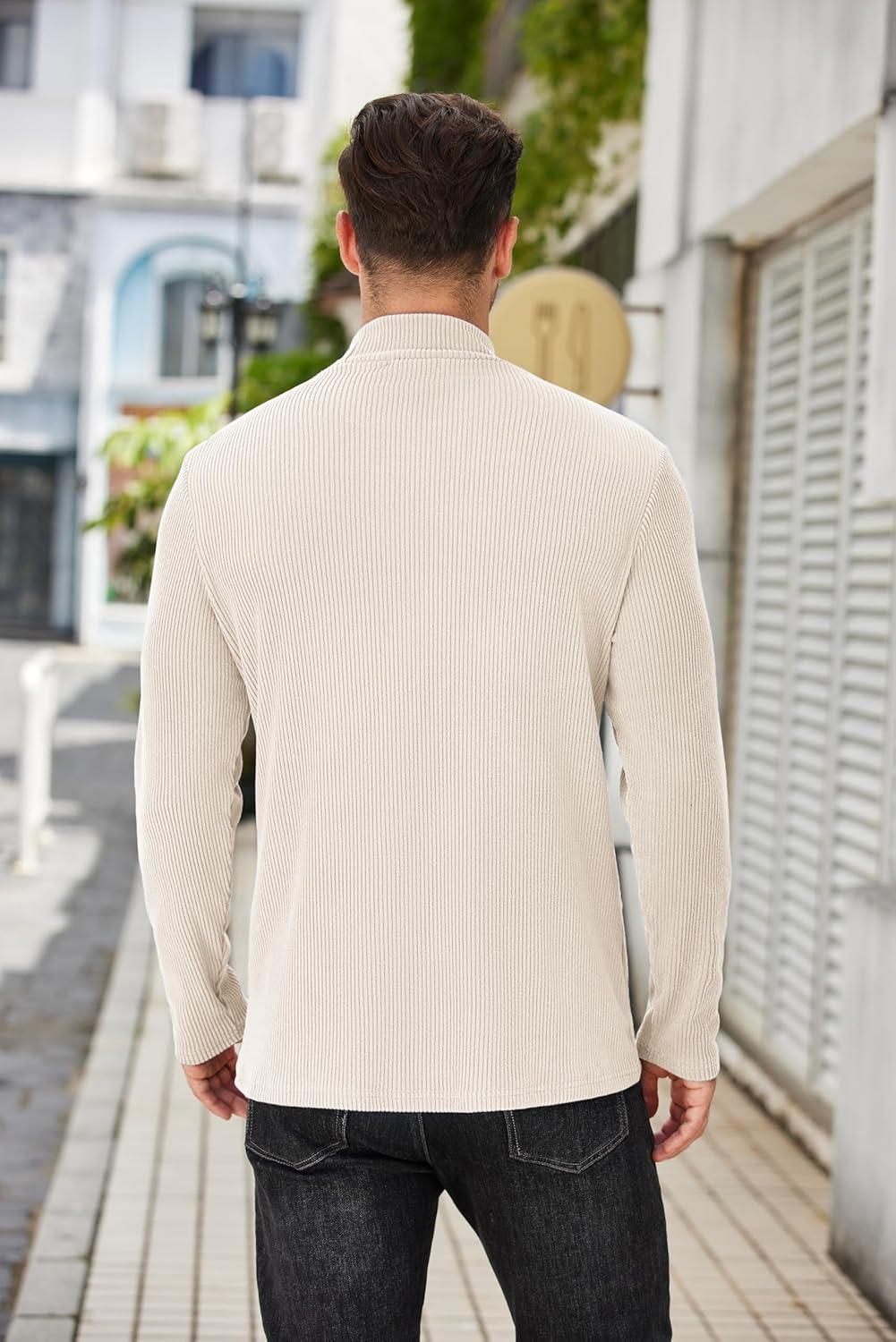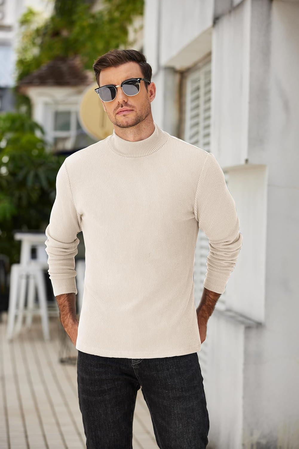 COOFANDY Men's Mock Turtleneck Sweater Long Sleeve Half Neck Pullover Thermal Casual Ribbed High Neck Pullover Sweater(Light Beige)