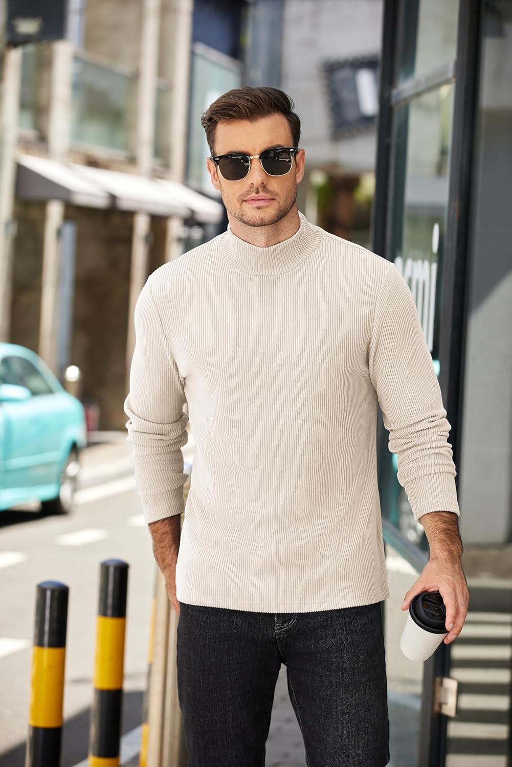 COOFANDY Men’s Mock Turtleneck Sweater Long Sleeve Half Neck Pullover Thermal Casual Ribbed High Neck Pullover Sweater(Light Beige)