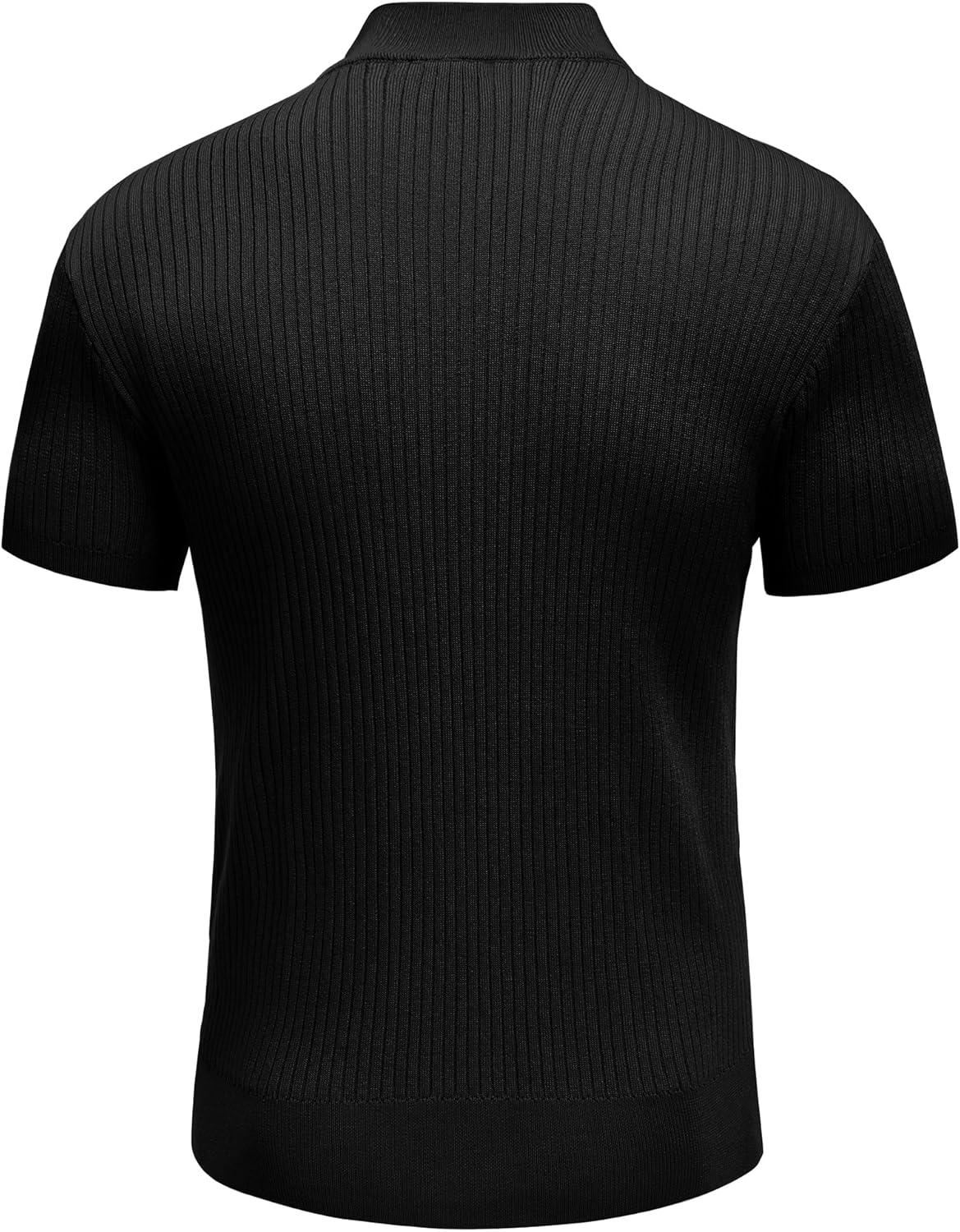 COOFANDY Men's Mock Turtleneck Sweater Short Sleeve Casual Basic Tops Ribbed Knit Pullover Solid Tee(All Black)