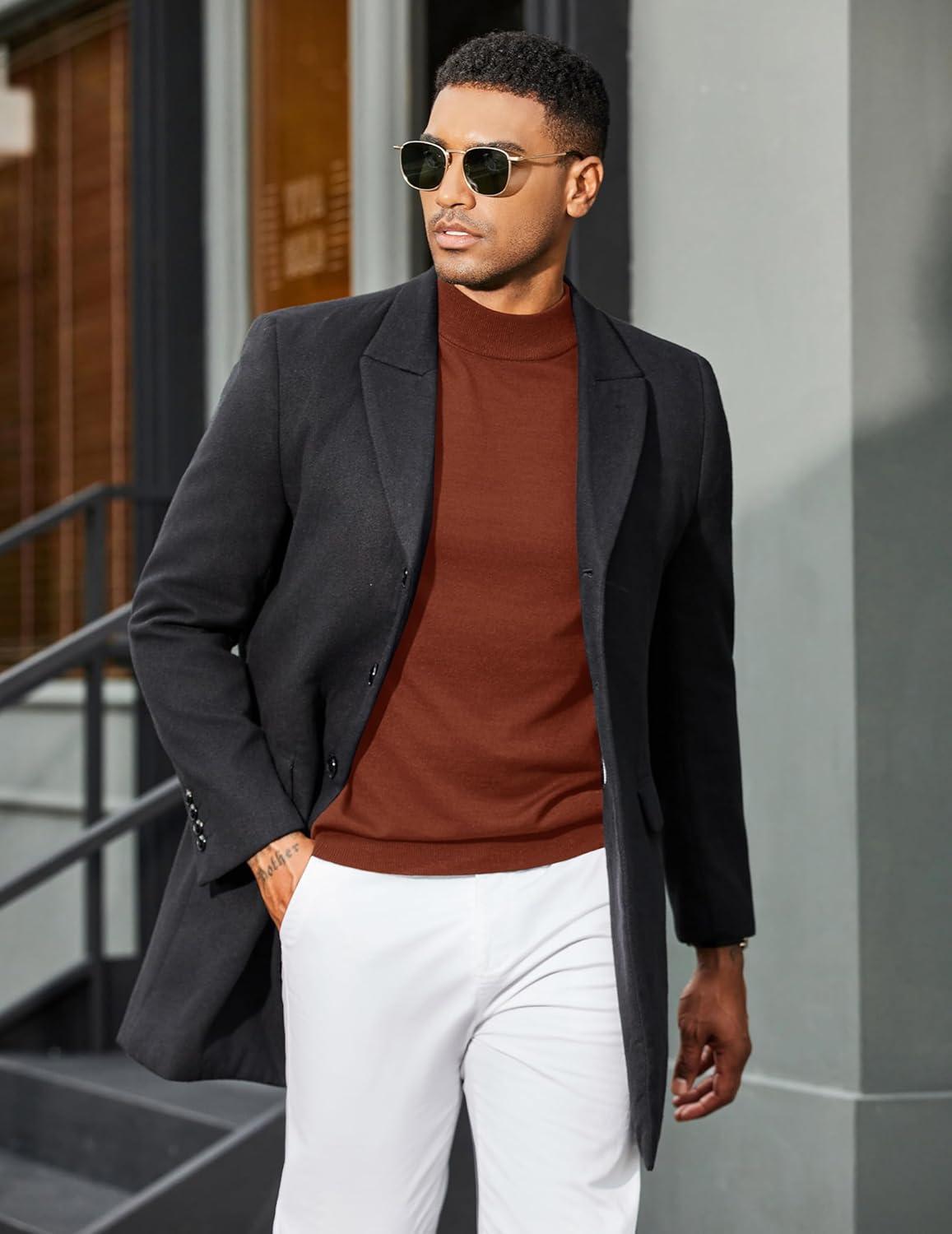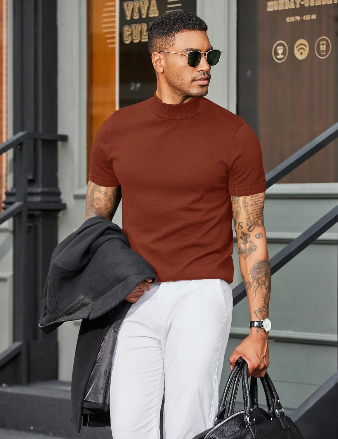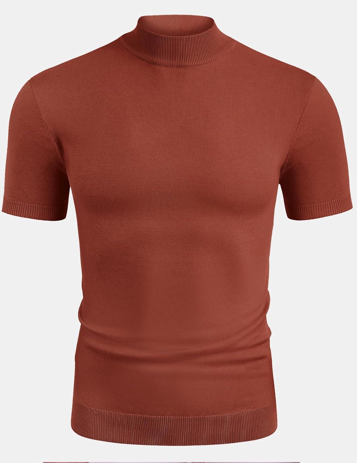 COOFANDY Mens Mock Turtleneck Sweater Short Sleeve Casual Dress Sweater Slim Fit Pullover Basic Knit Tee(Caramel)