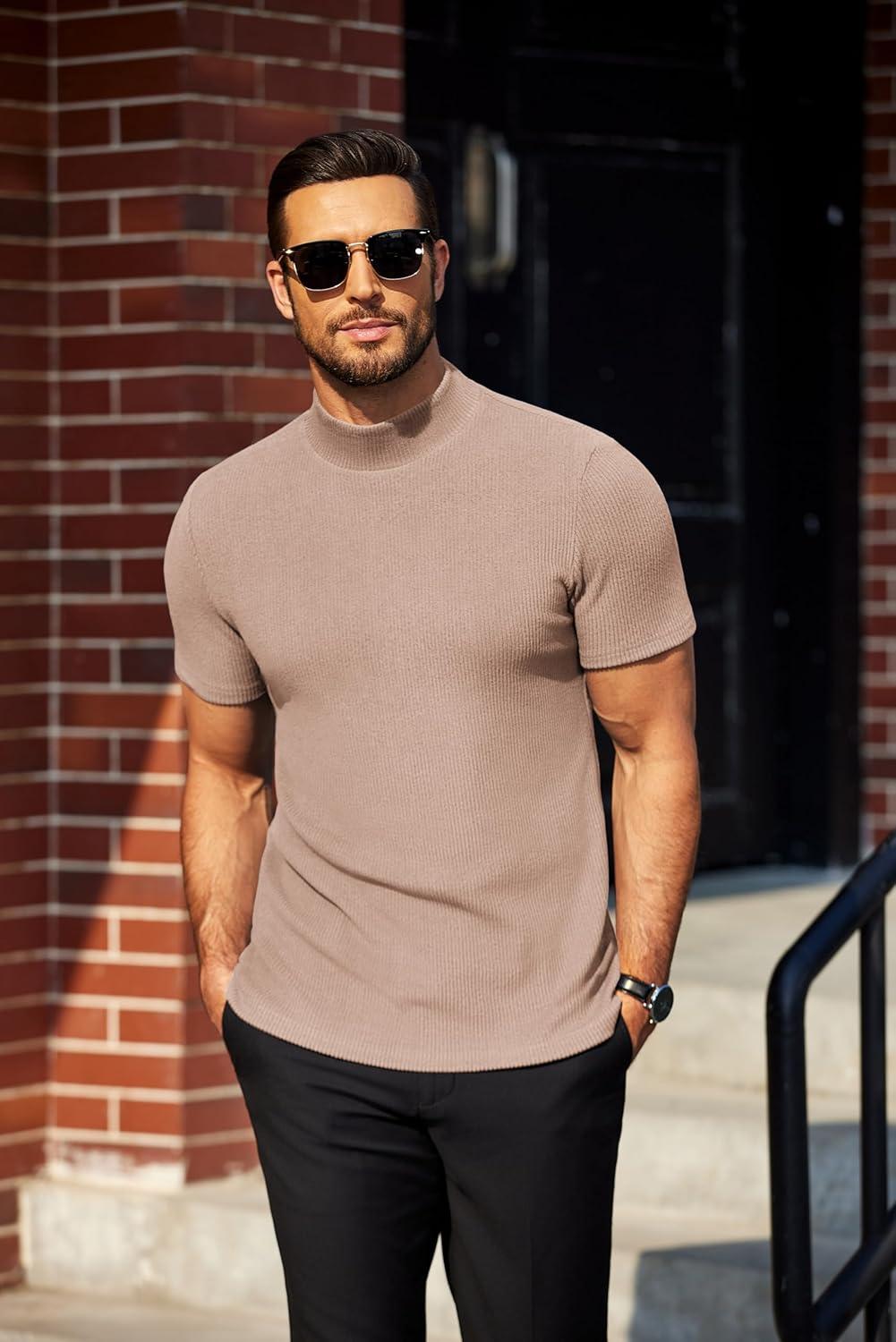 Score big on COOFANDY Mens Mock Turtleneck Sweater Short Sleeve Turtle Neck Sweaters Casual Ribbed Knitted Pullover Tops Solid Basic Tee(Light Khaki) and accessories during our BOGO sale. Buy one, get one 50% off!