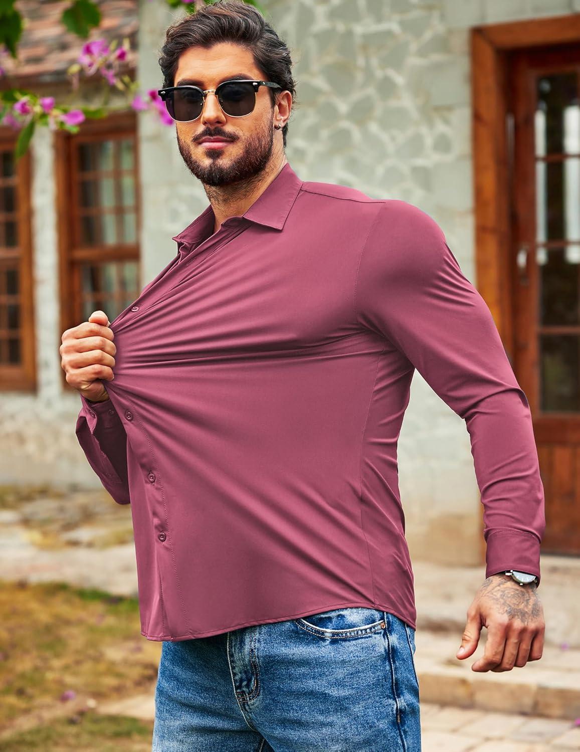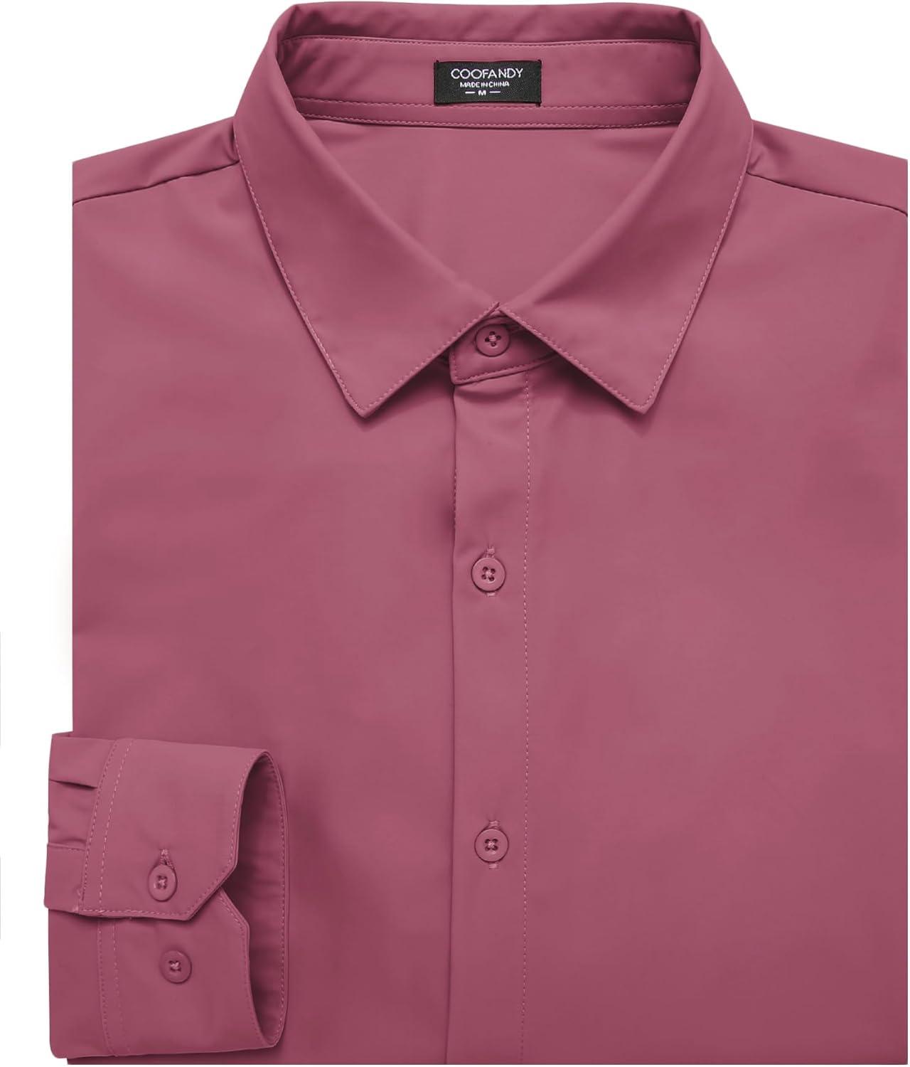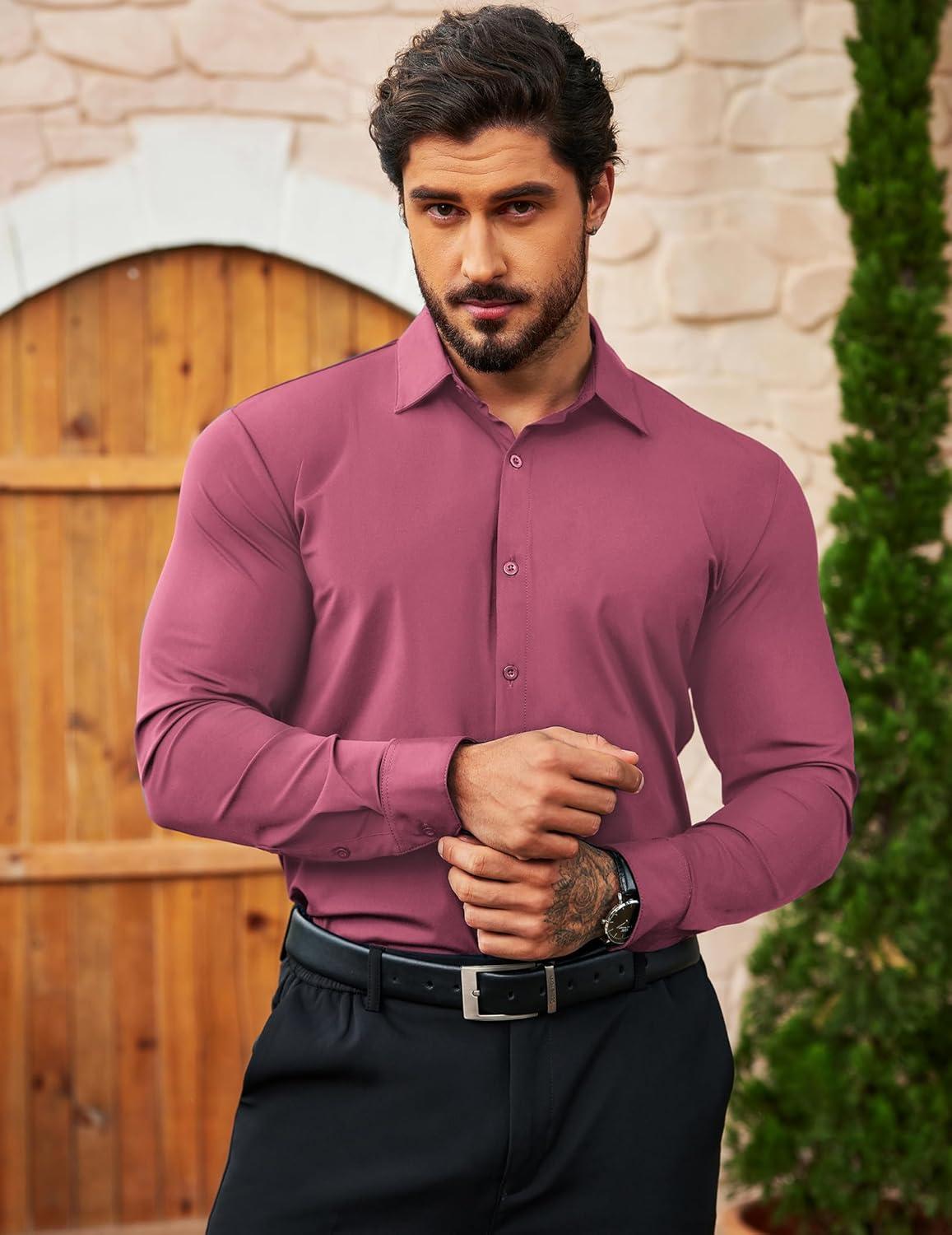 COOFANDY Men's Muscle Fit Dress Shirts Wrinkle Free Long Sleeve Button Down Shirt Stretch Business Shirt(Deep Purple)