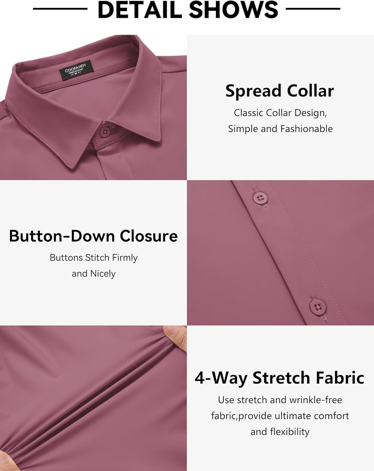 imageCOOFANDY Mens Muscle Fit Dress Shirts Wrinkle Free Long Sleeve Button Down Shirt Stretch Business ShirtDeep Purple