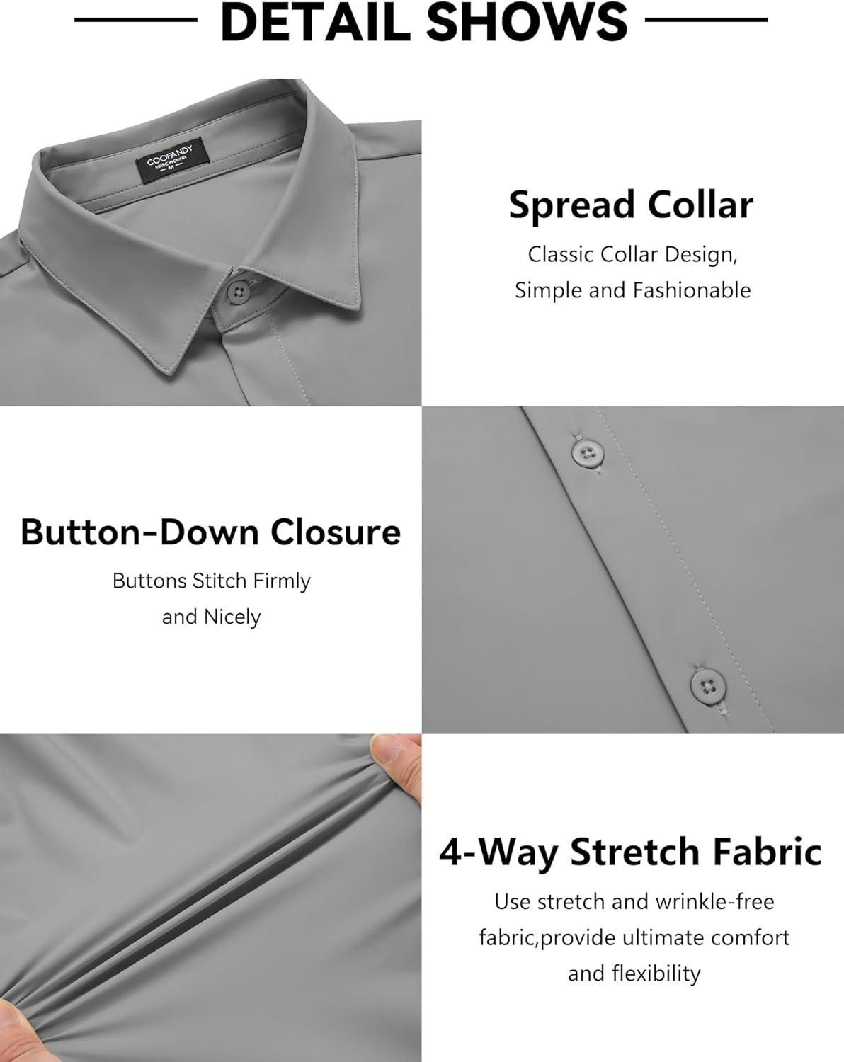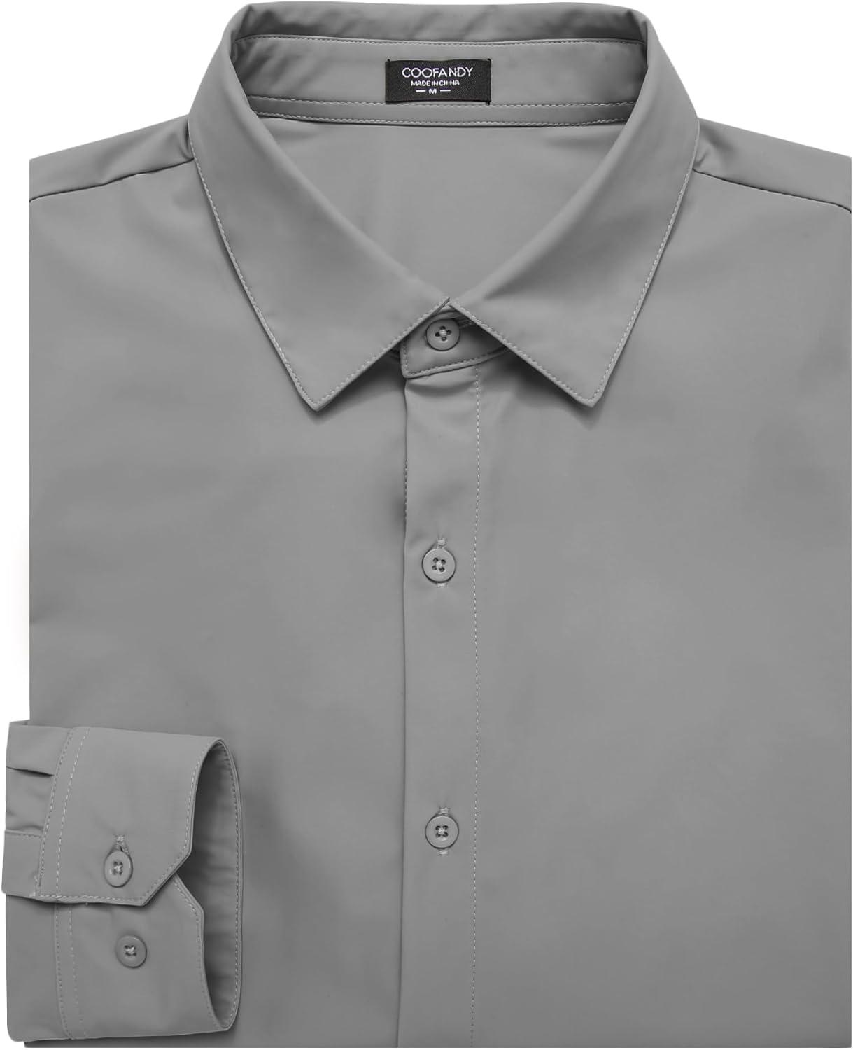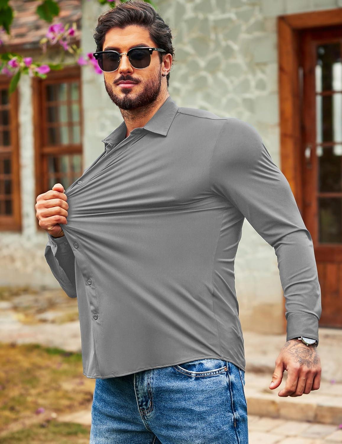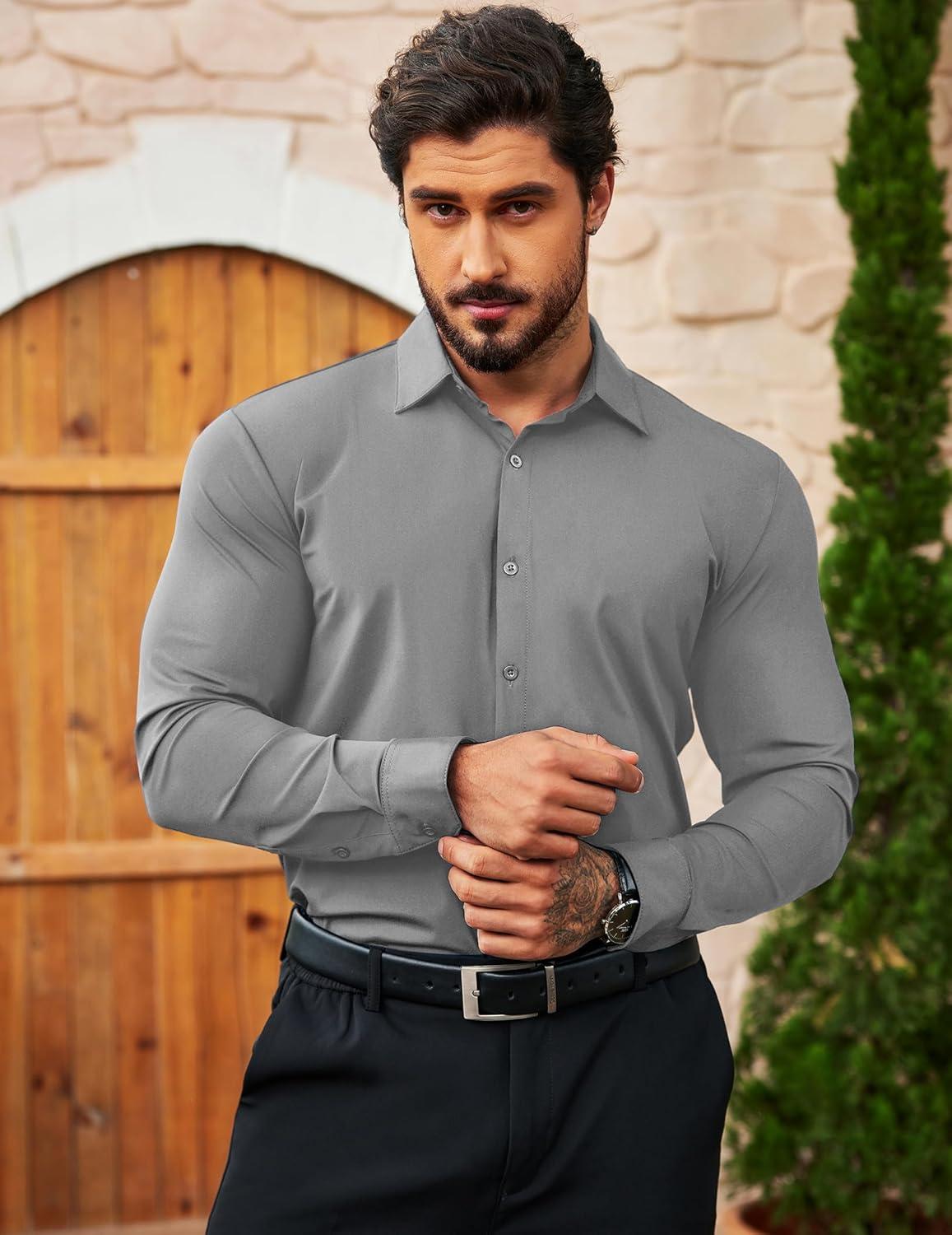 COOFANDY Men's Muscle Fit Dress Shirts Wrinkle Free Long Sleeve Button Down Shirt Stretch Business Shirt(Light Grey)