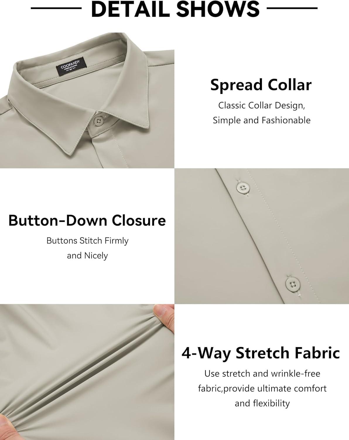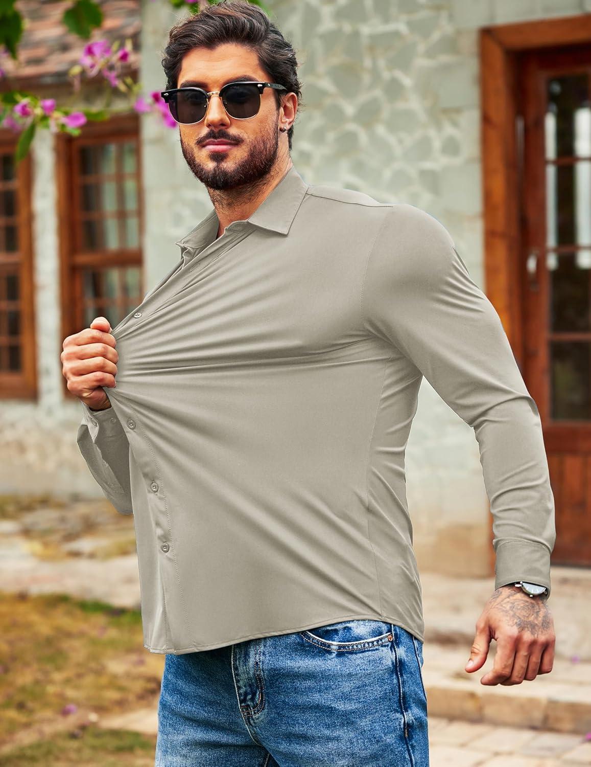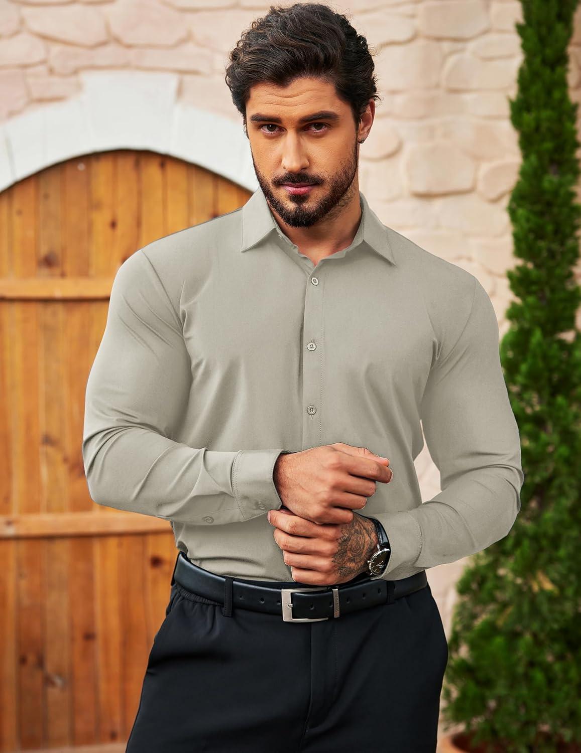 COOFANDY Men's Muscle Fit Dress Shirts Wrinkle Free Long Sleeve Button Down Shirt Stretch Business Shirt(Moon Grey)