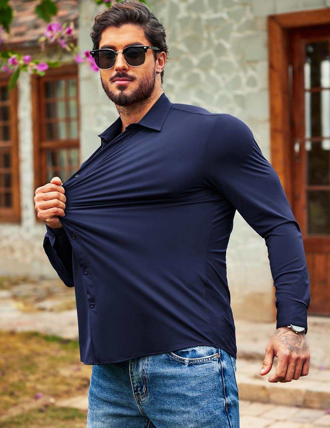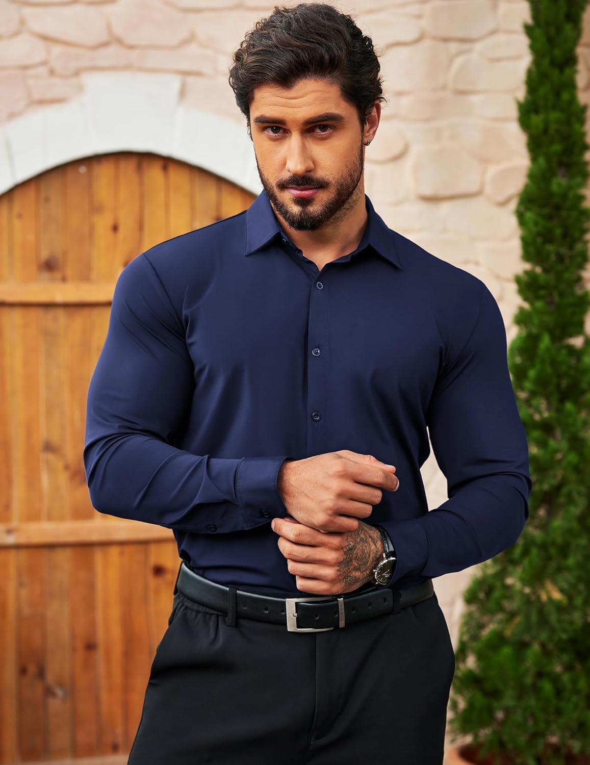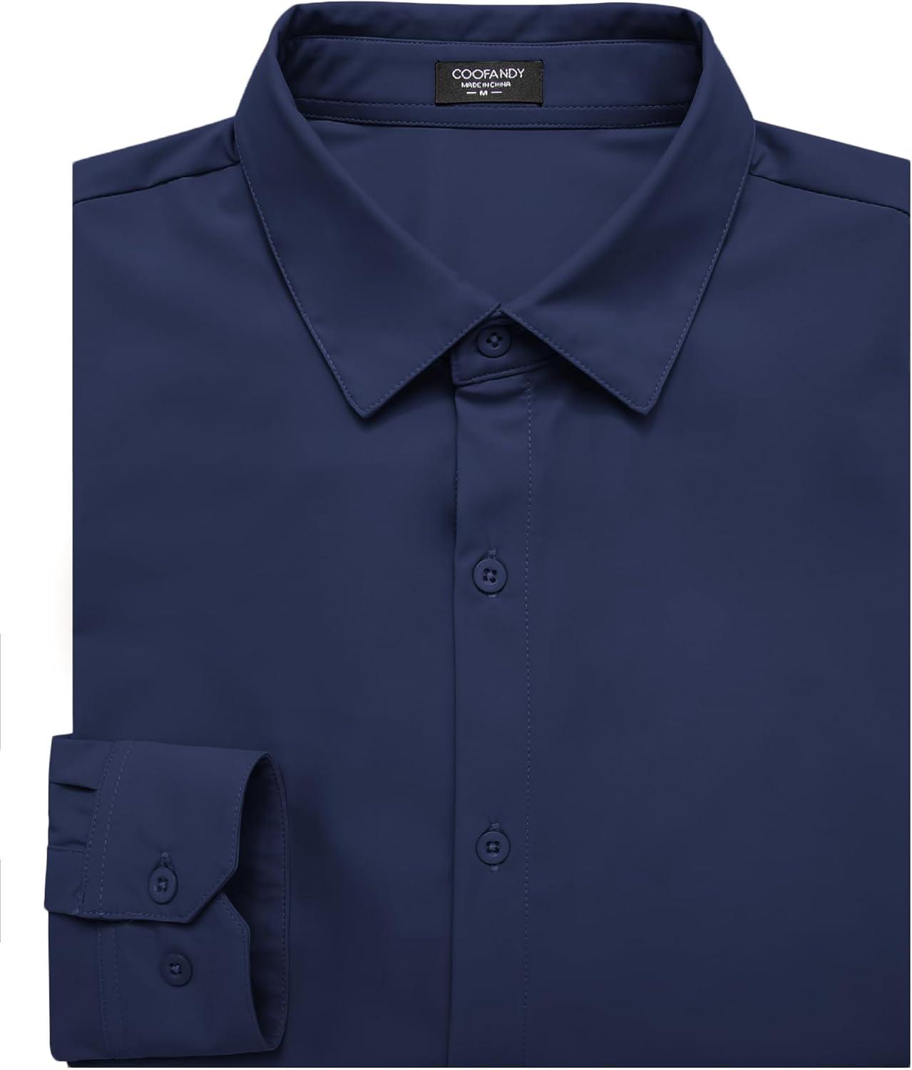 COOFANDY Men's Muscle Fit Dress Shirts Wrinkle Free Long Sleeve Button Down Shirt Stretch Business Shirt(Navy Blue)