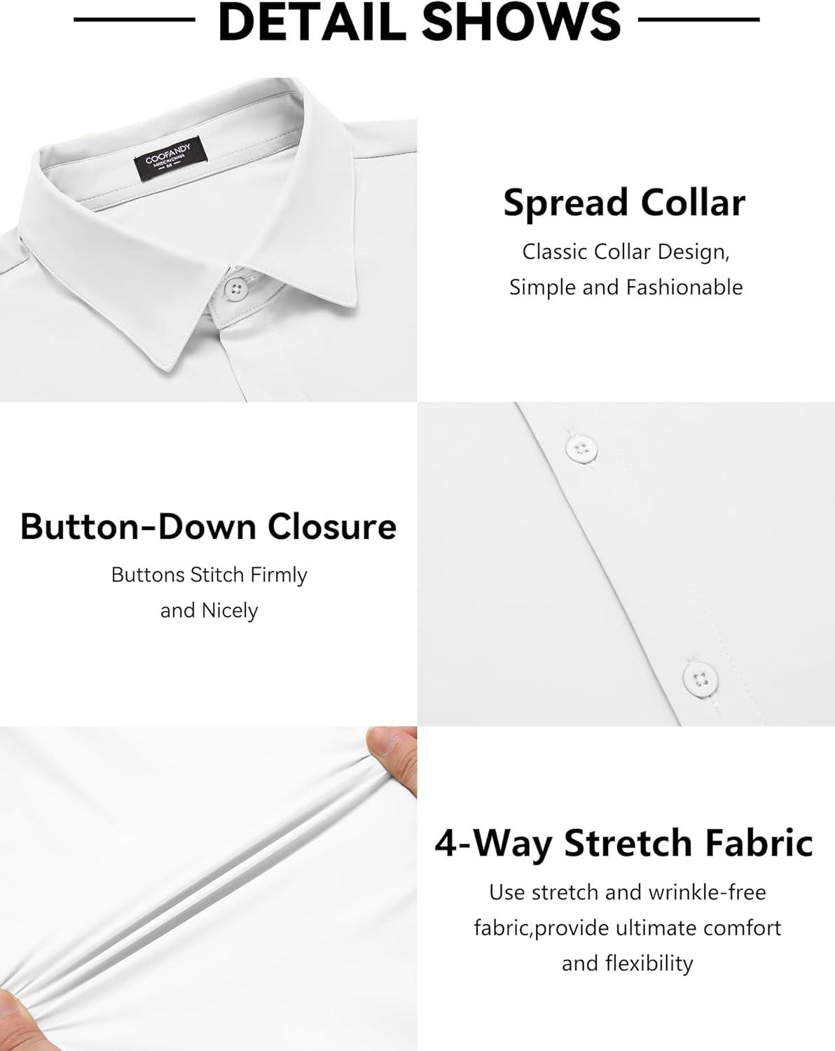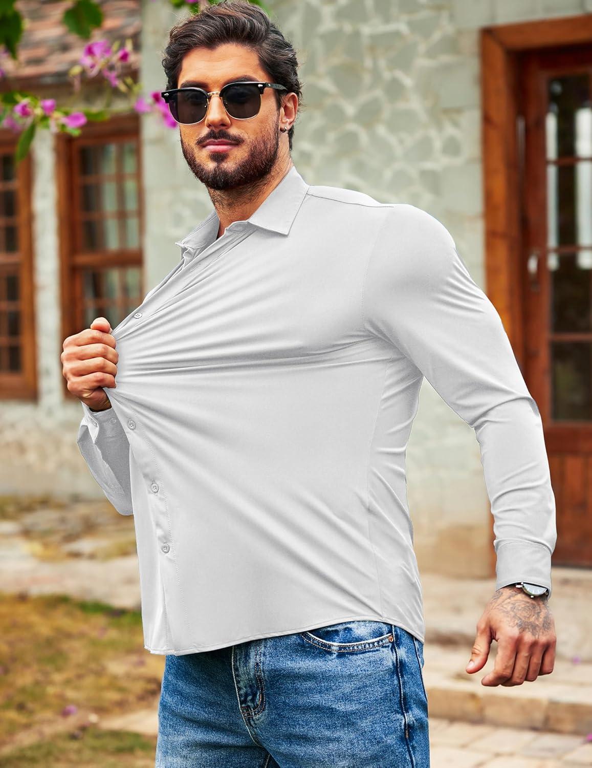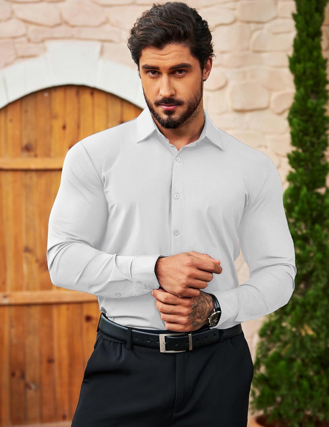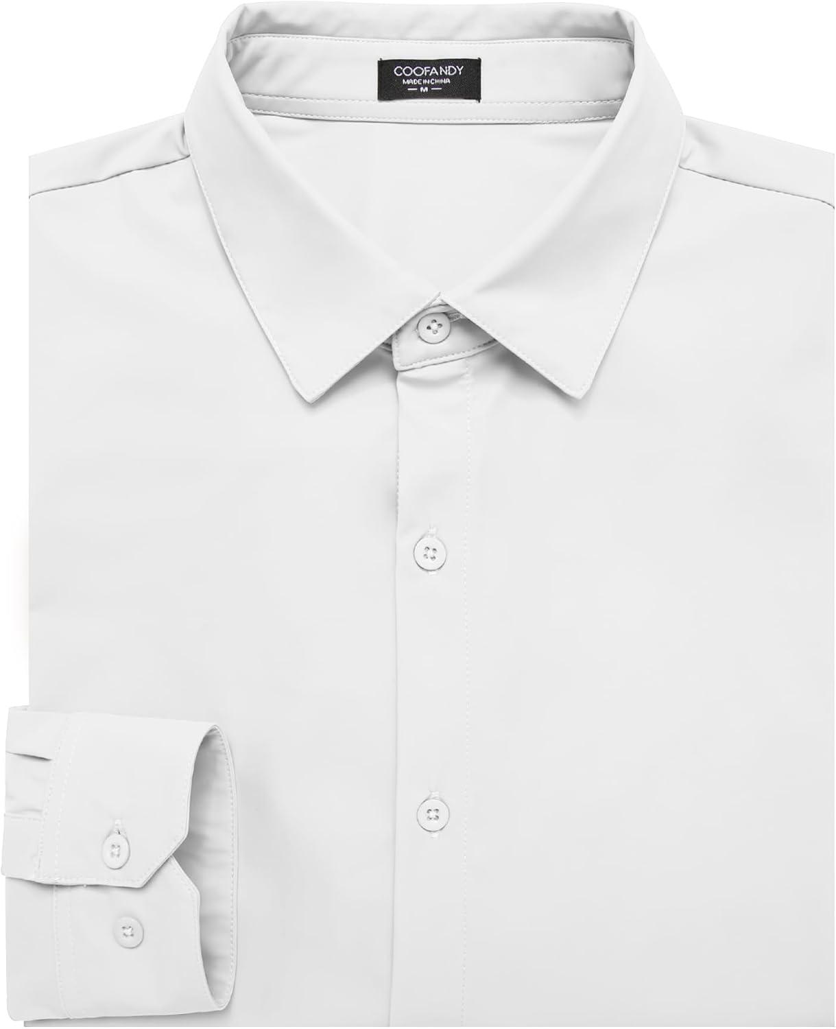 COOFANDY Men's Muscle Fit Dress Shirts Wrinkle Free Long Sleeve Button Down Shirt Stretch Business Shirt(White)