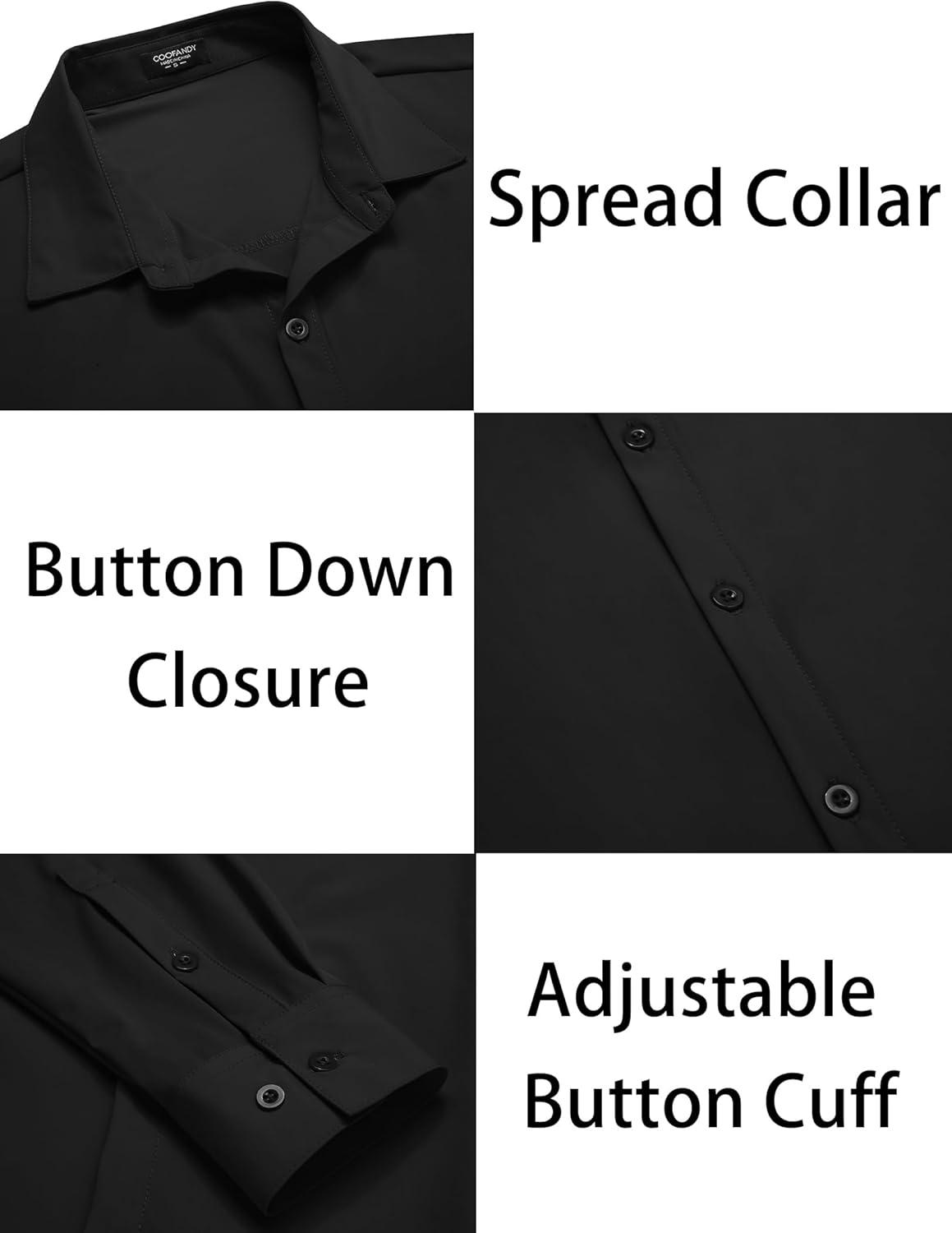 COOFANDY Men’s Muscle Fit Dress Shirts Wrinkle-Free Long Sleeve Casual Button Down Shirts(Black)