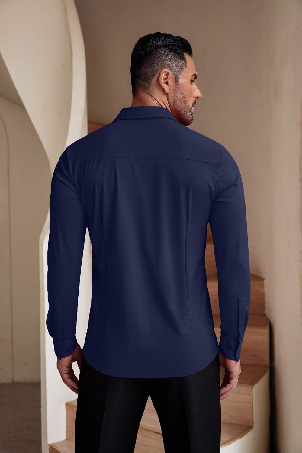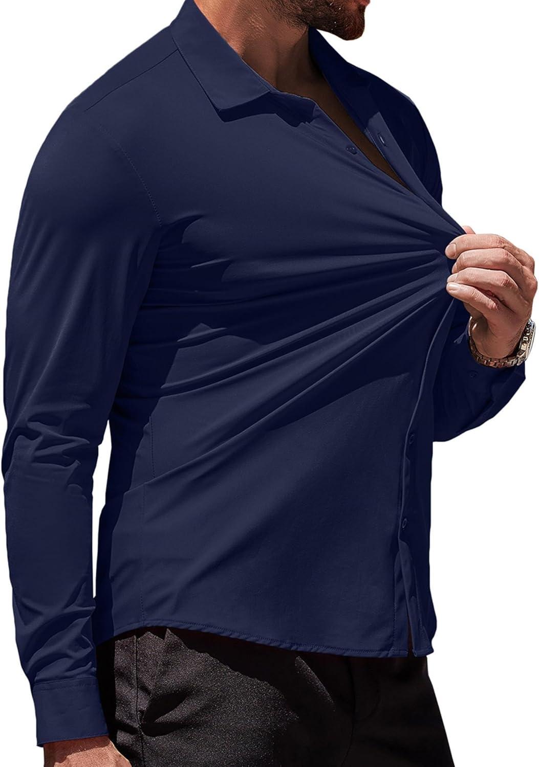 COOFANDY Men's Muscle Fit Dress Shirts Wrinkle-Free Long Sleeve Casual Button Down Shirts(Deep Blue)