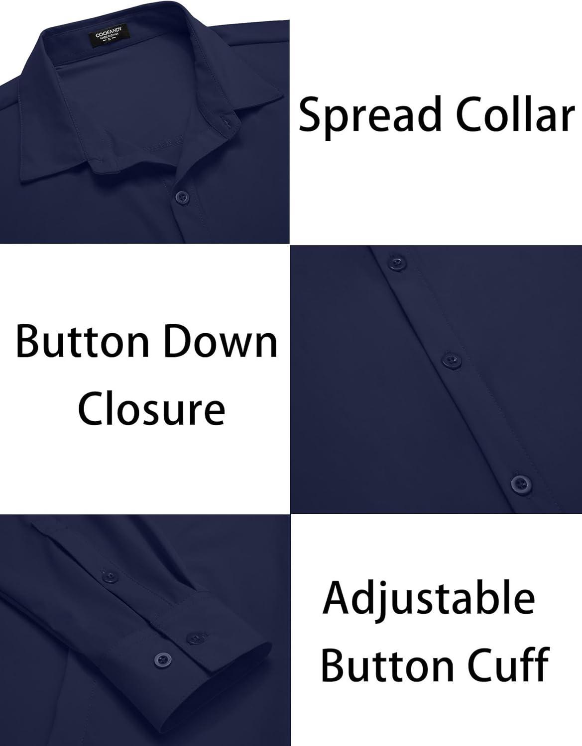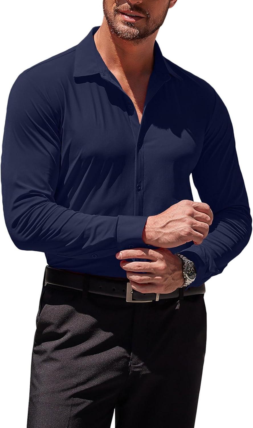 COOFANDY Men’s Muscle Fit Dress Shirts Wrinkle-Free Long Sleeve Casual Button Down Shirts(Deep Blue)
