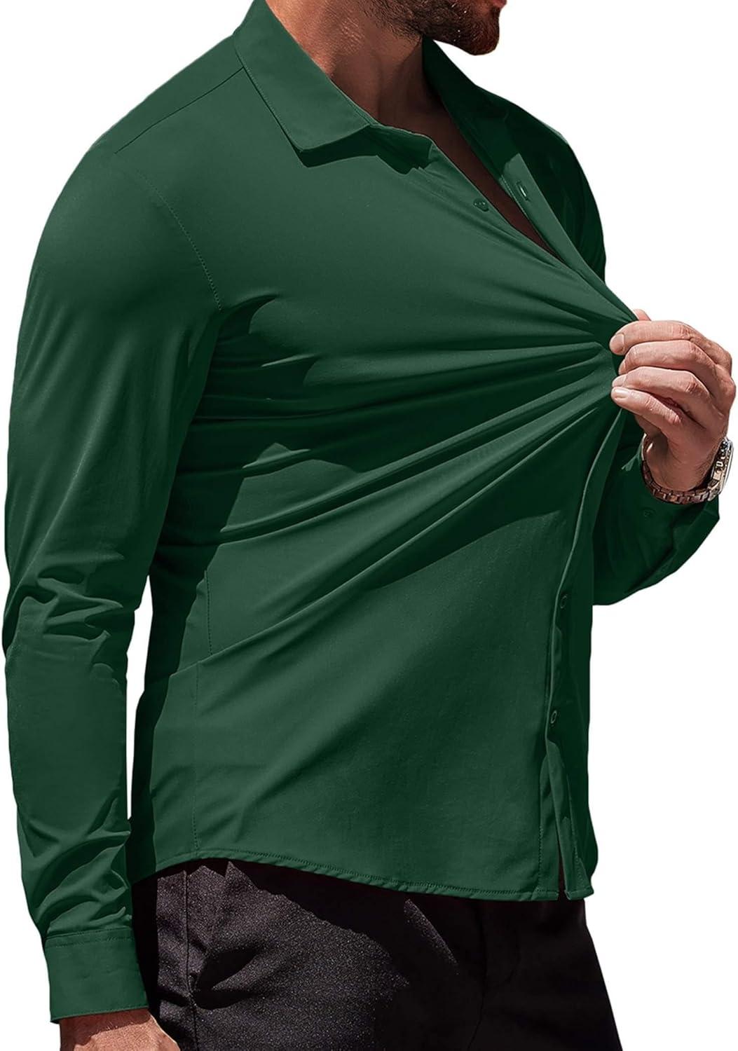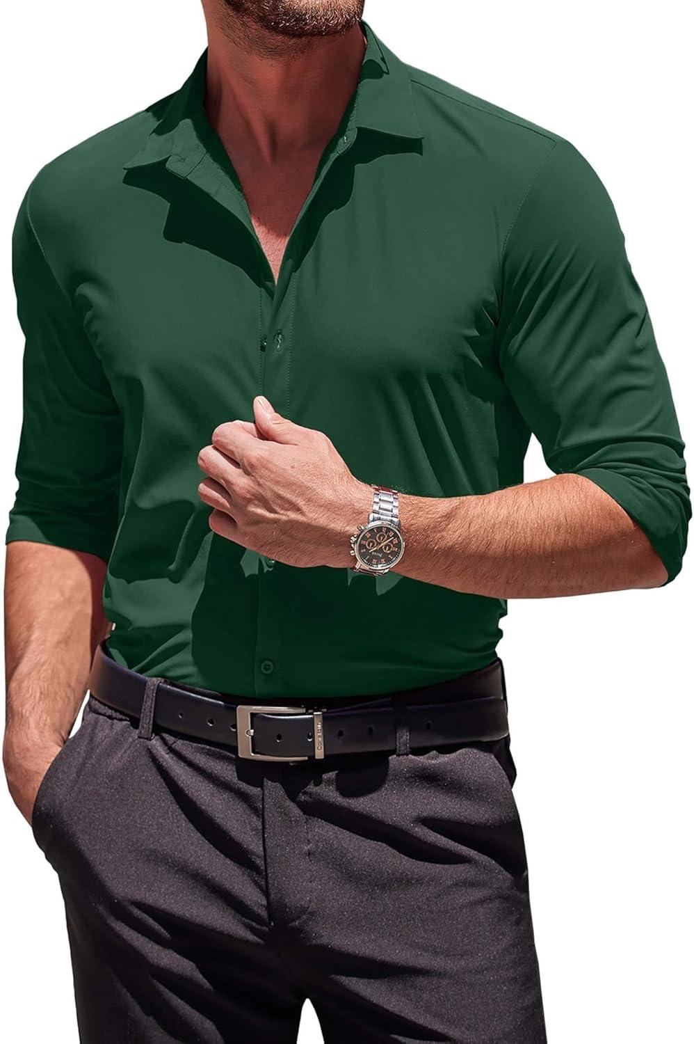 COOFANDY Men's Muscle Fit Dress Shirts Wrinkle-Free Long Sleeve Casual Button Down Shirts(Green)