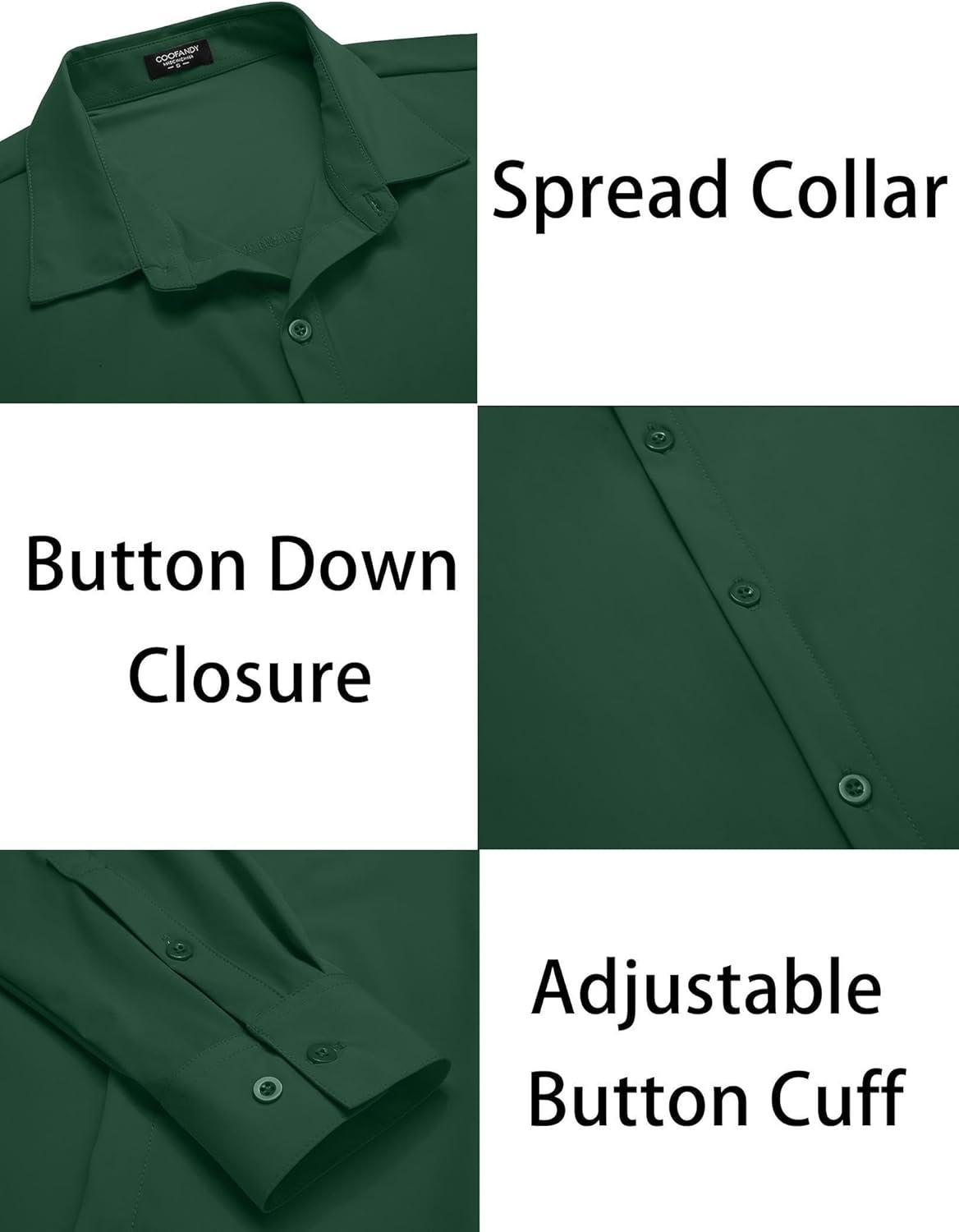 imageCOOFANDY Mens Muscle Fit Dress Shirts WrinkleFree Long Sleeve Casual Button Down ShirtsGreen
