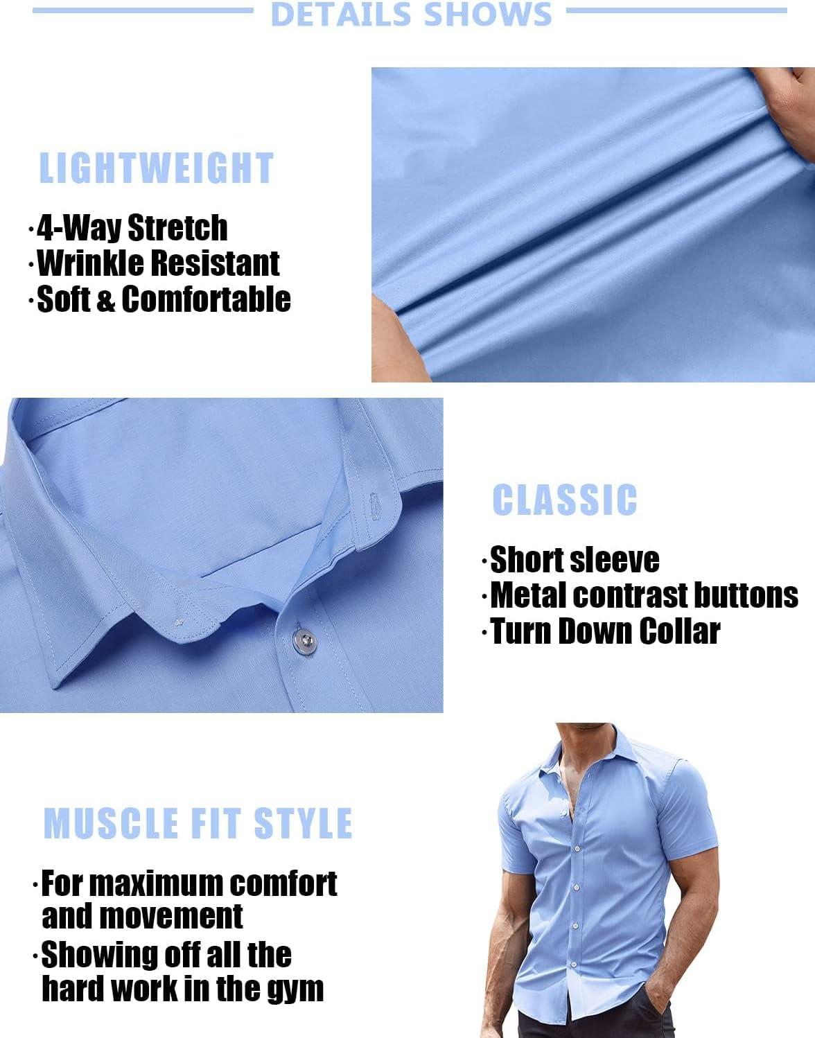 COOFANDY Men's Muscle Fit Dress Shirts Wrinkle-Free Short Sleeve Casual Button Down Shirt(Blue)