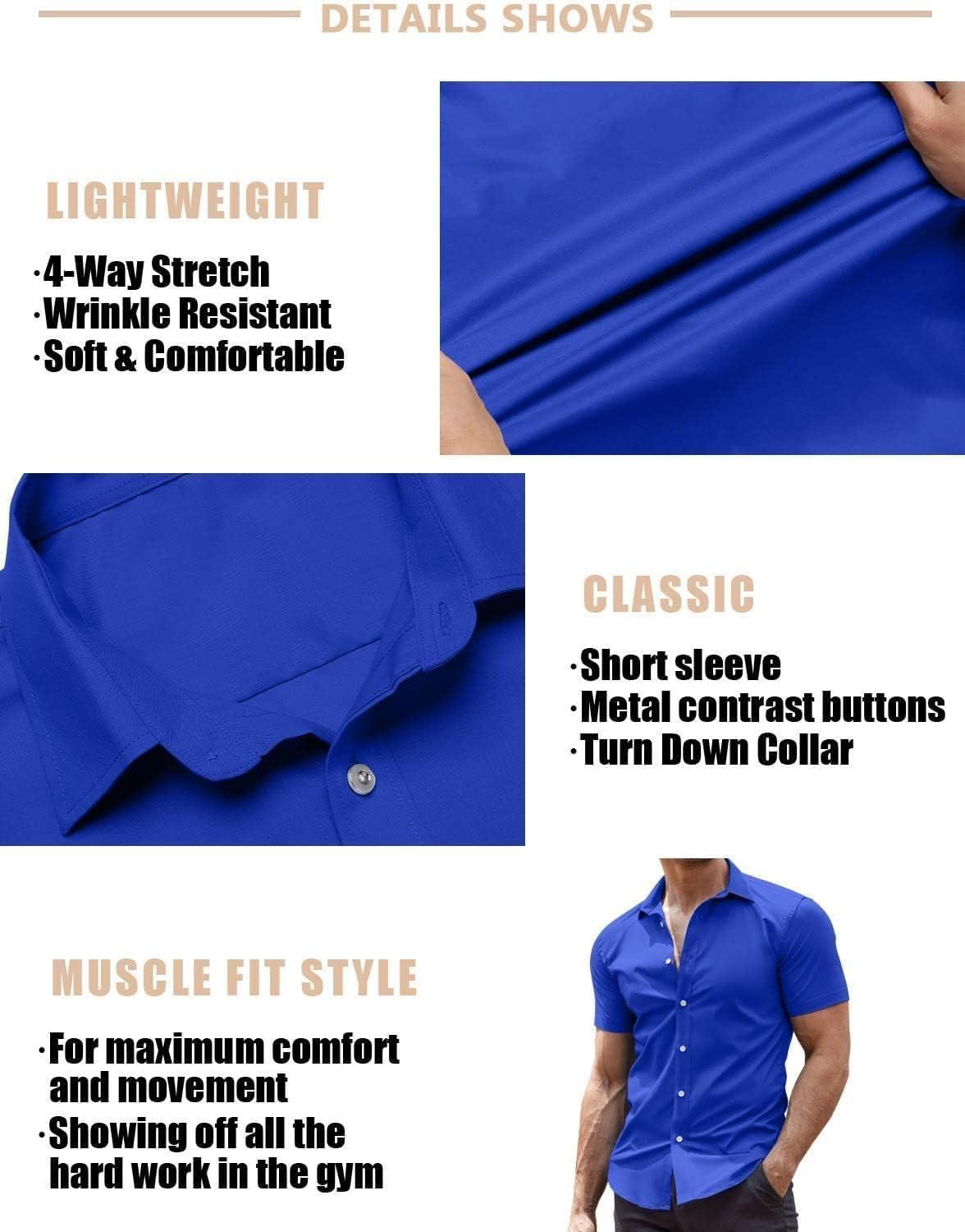 COOFANDY Men's Muscle Fit Dress Shirts Wrinkle-Free Short Sleeve Casual Button Down Shirt(Royal Blue)