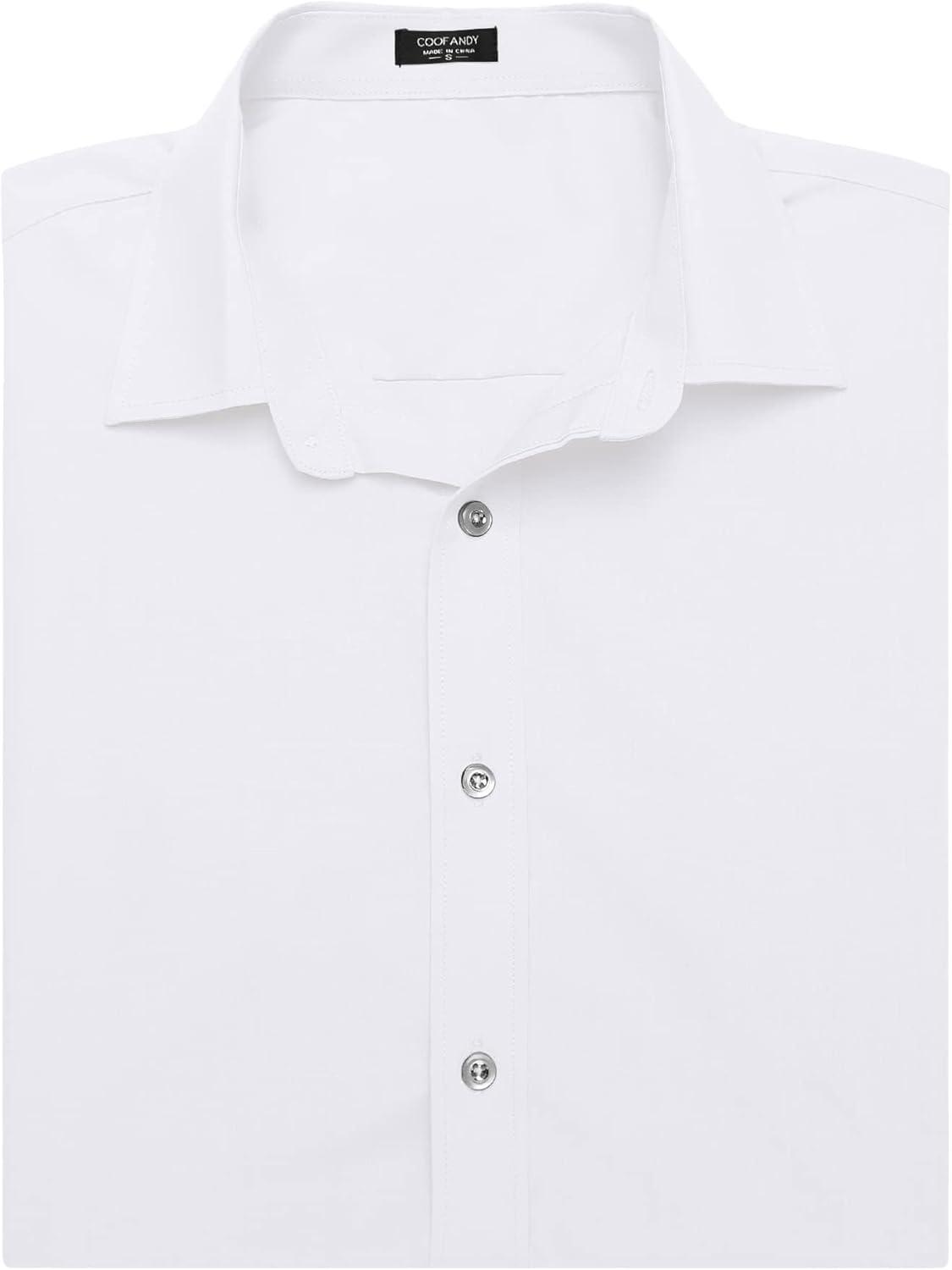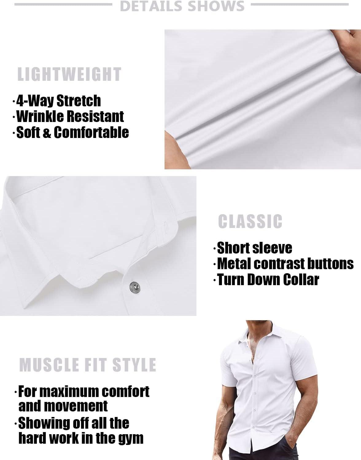 COOFANDY Men’s Muscle Fit Dress Shirts Wrinkle-Free Short Sleeve Casual Button Down Shirt(White)