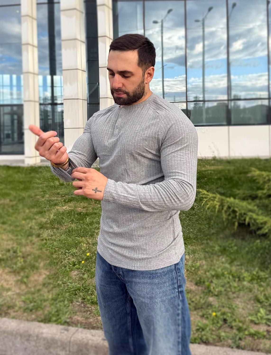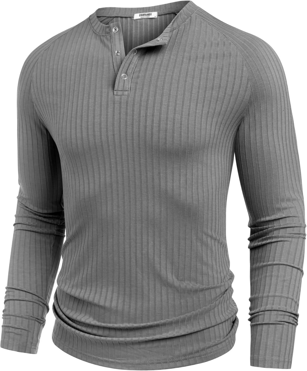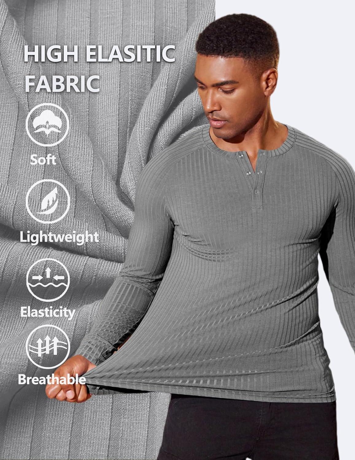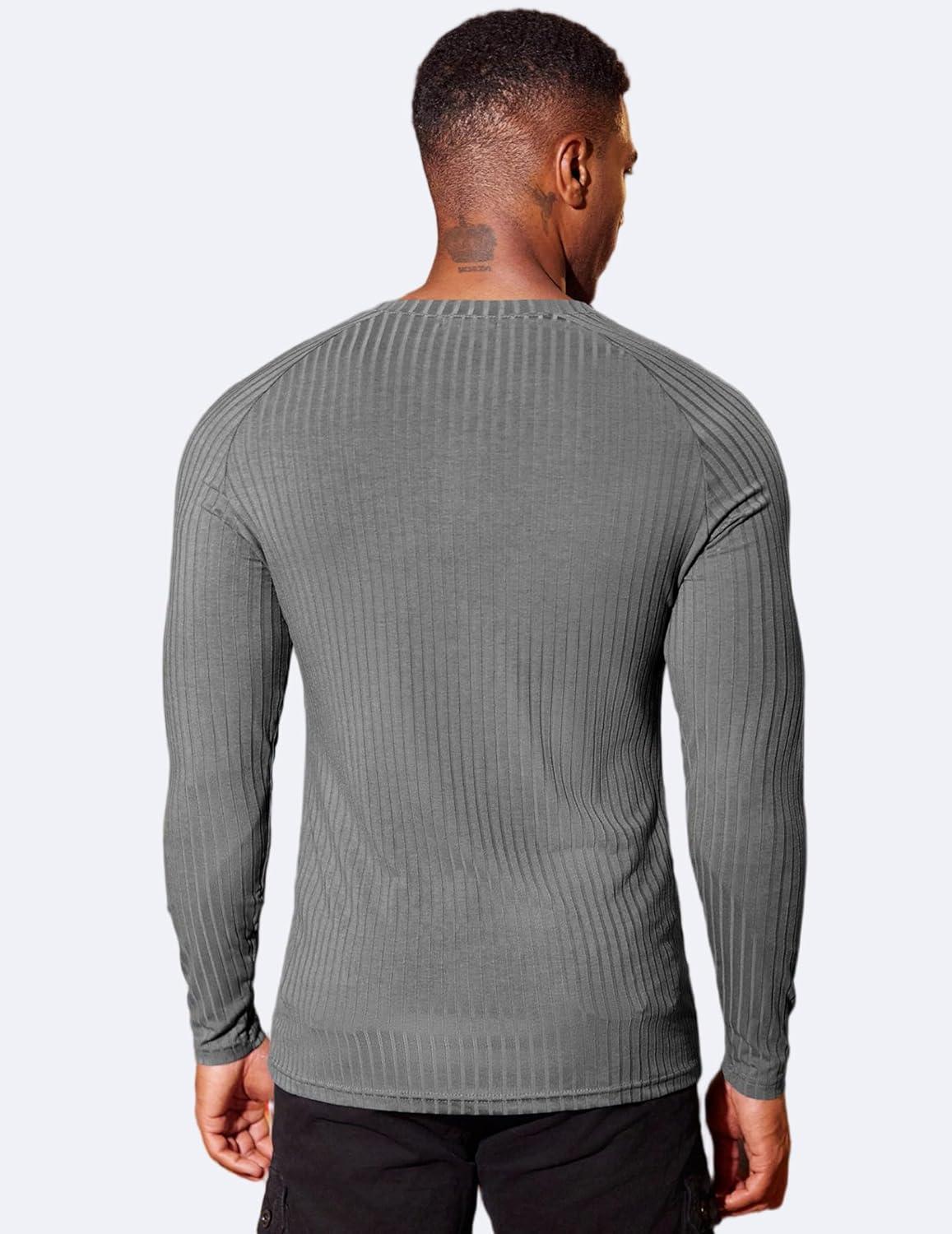 COOFANDY Men's Muscle Slim Fit T-Shirt Long Sleeve Henley Shirts Casual Gym Workout Athletic Tee Shirts(Grey)