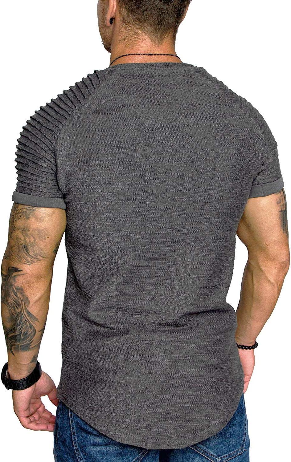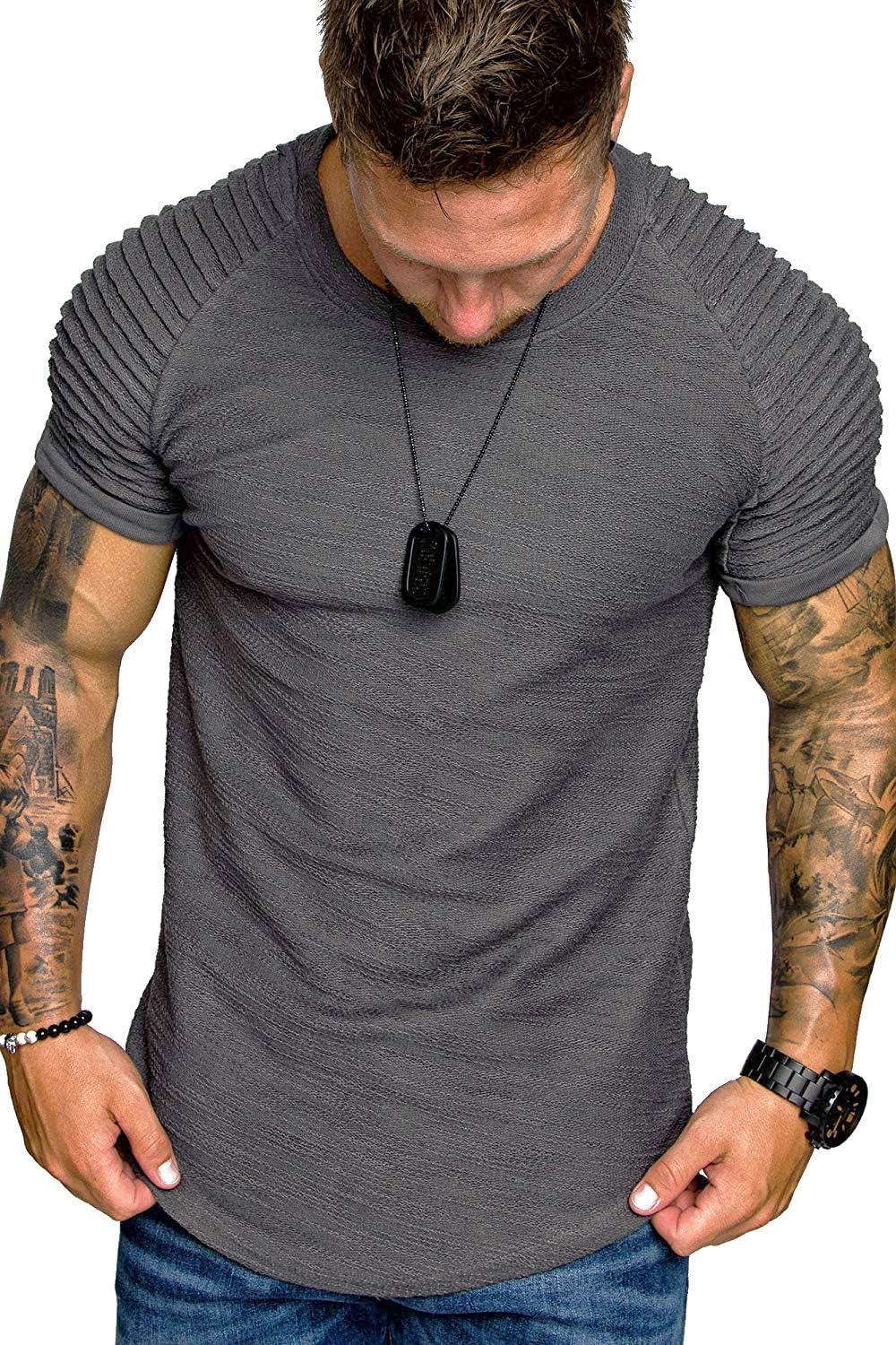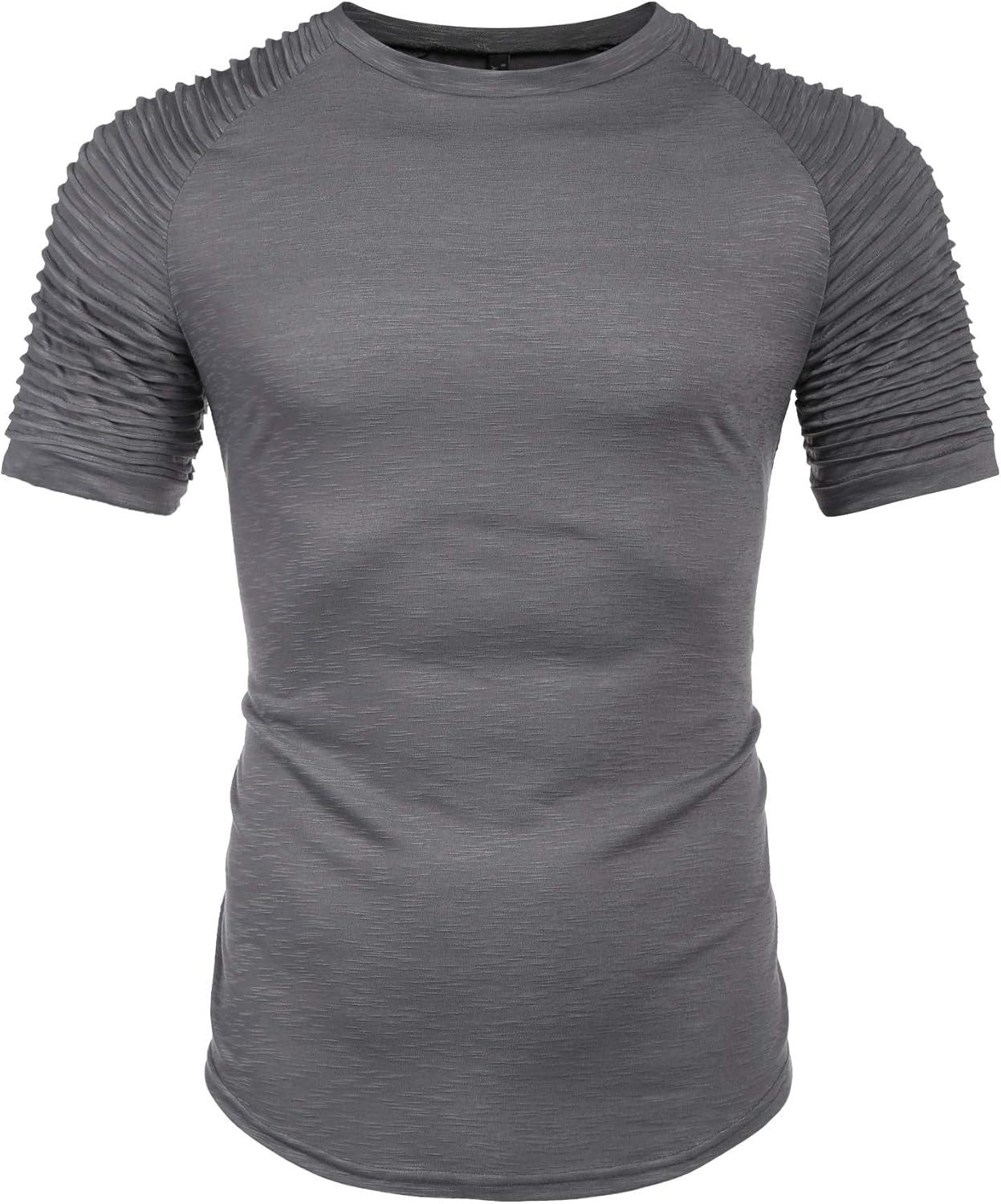 COOFANDY Men's Muscle T-Shirt Pleated Raglan Sleeve Bodybuilding Gym Tee Short Sleeve Fashion Workout Shirts Hipster Shirt(Grey)