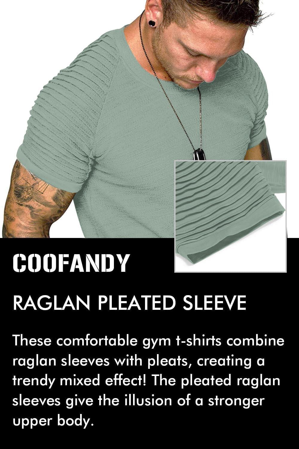 COOFANDY Men’s Muscle T-Shirt Pleated Raglan Sleeve Bodybuilding Gym Tee Short Sleeve Fashion Workout Shirts Hipster Shirt(Light Green)