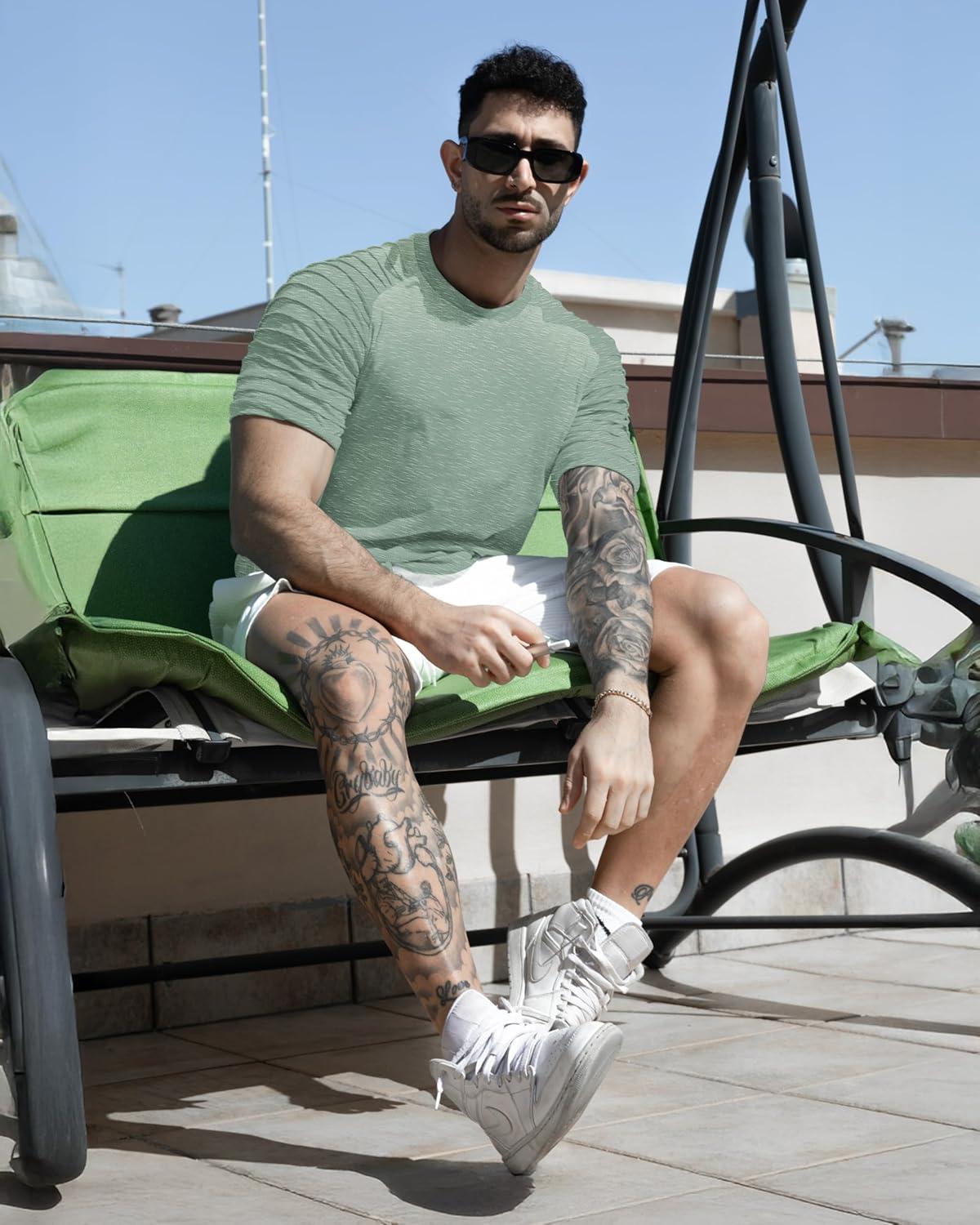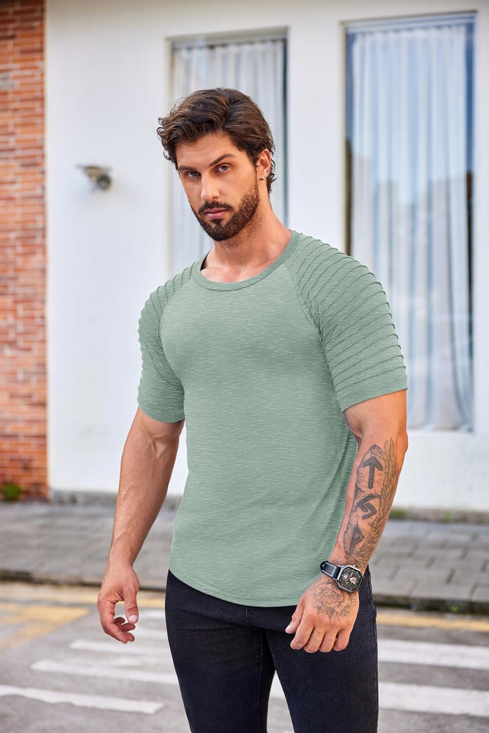 COOFANDY Men's Muscle T-Shirt Pleated Raglan Sleeve Bodybuilding Gym Tee Short Sleeve Fashion Workout Shirts Hipster Shirt(Light Green)