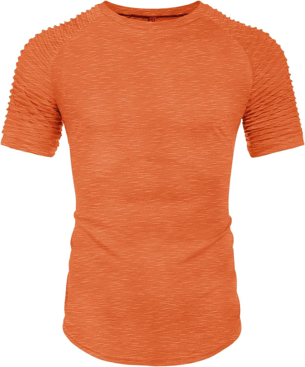 COOFANDY Men's Muscle T-Shirt Pleated Raglan Sleeve Bodybuilding Gym Tee Short Sleeve Fashion Workout Shirts Hipster Shirt(Orange)