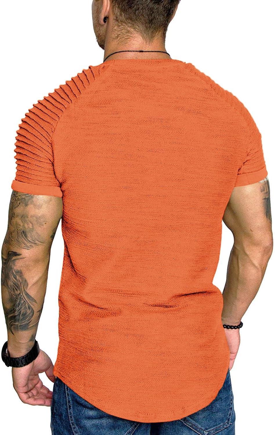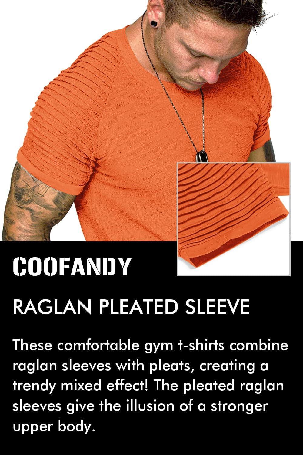 COOFANDY Men’s Muscle T-Shirt Pleated Raglan Sleeve Bodybuilding Gym Tee Short Sleeve Fashion Workout Shirts Hipster Shirt(Orange)