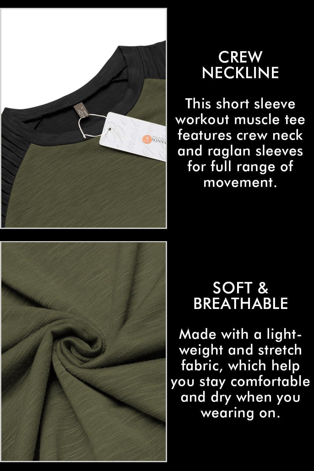 COOFANDY Men’s Muscle T-Shirt Pleated Raglan Sleeve Bodybuilding Gym Tee Short Sleeve Fashion Workout Shirts Hipster Shirt(Pattern3 (Army Green & Black))