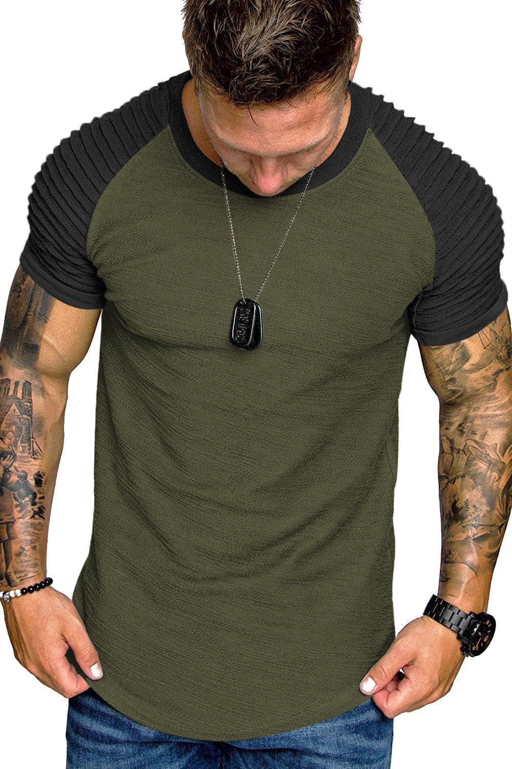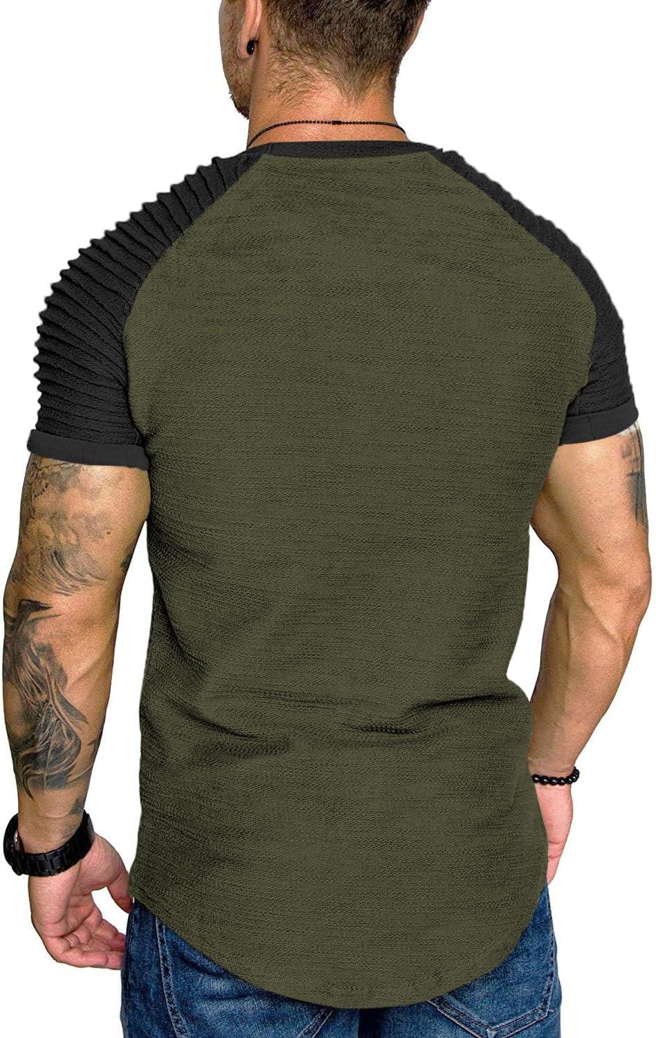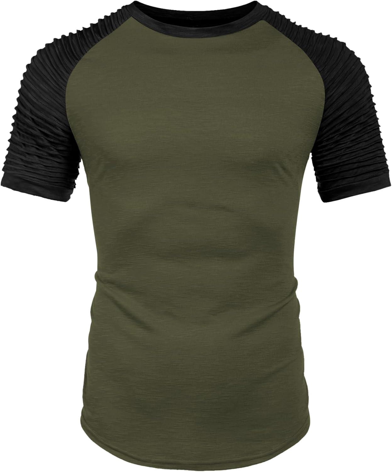 COOFANDY Men's Muscle T-Shirt Pleated Raglan Sleeve Bodybuilding Gym Tee Short Sleeve Fashion Workout Shirts Hipster Shirt(Pattern3 (Army Green & Black))
