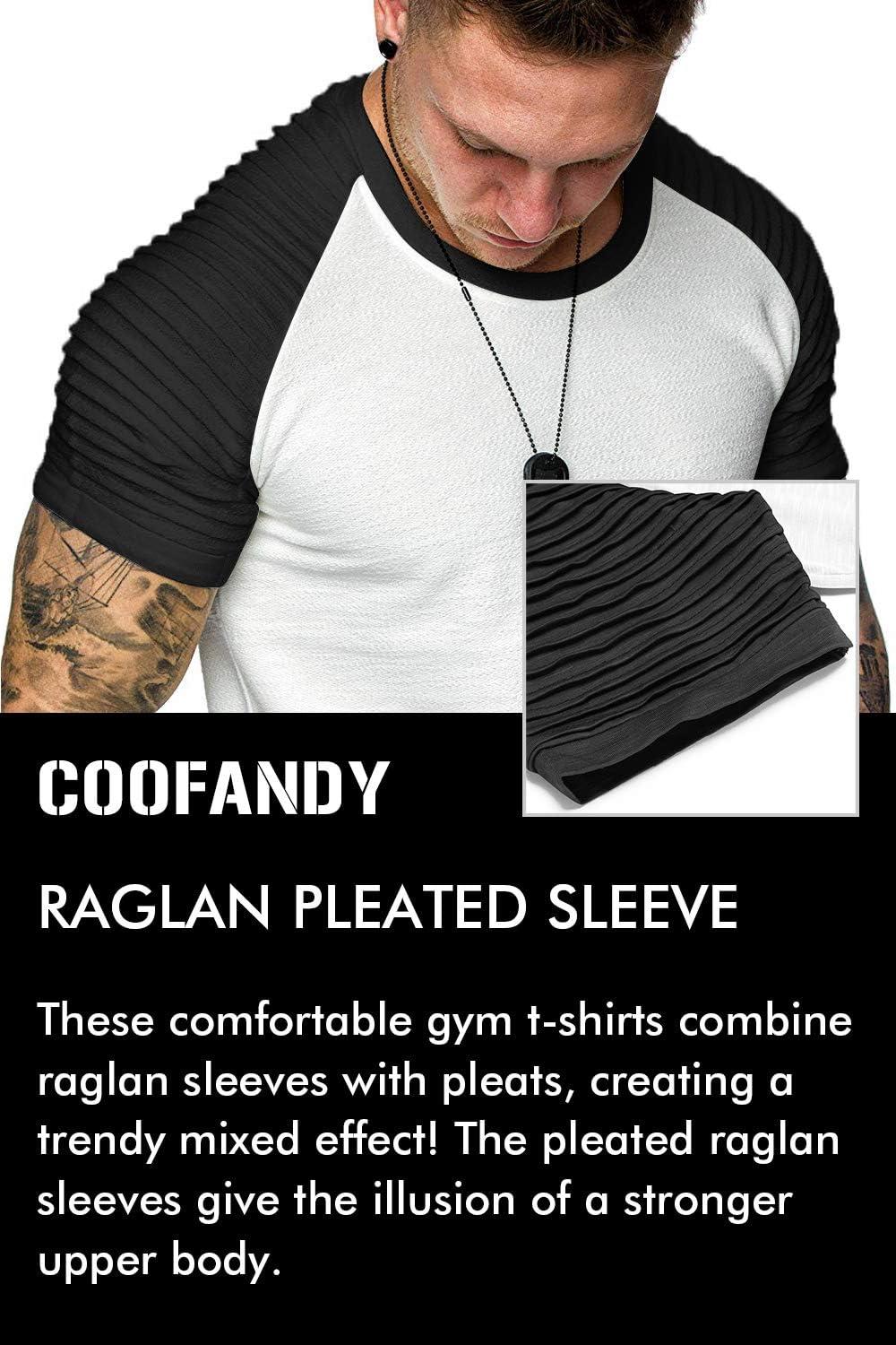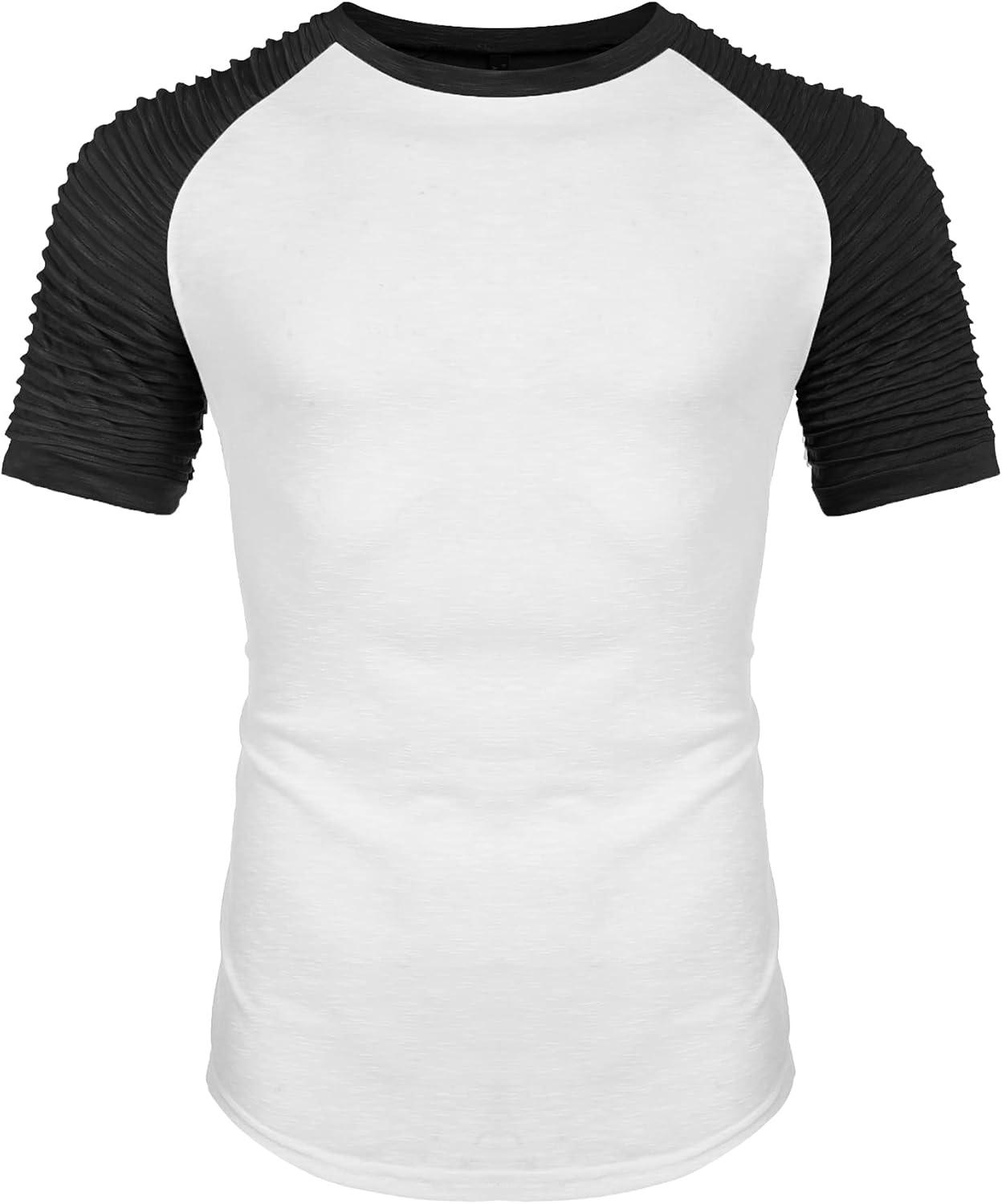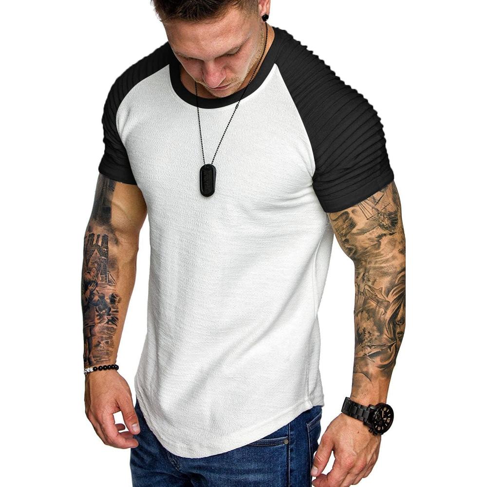 COOFANDY Men's Muscle T-Shirt Pleated Raglan Sleeve Bodybuilding Gym Tee Short Sleeve Fashion Workout Shirts Hipster Shirt(Pattern3 (White & Black))