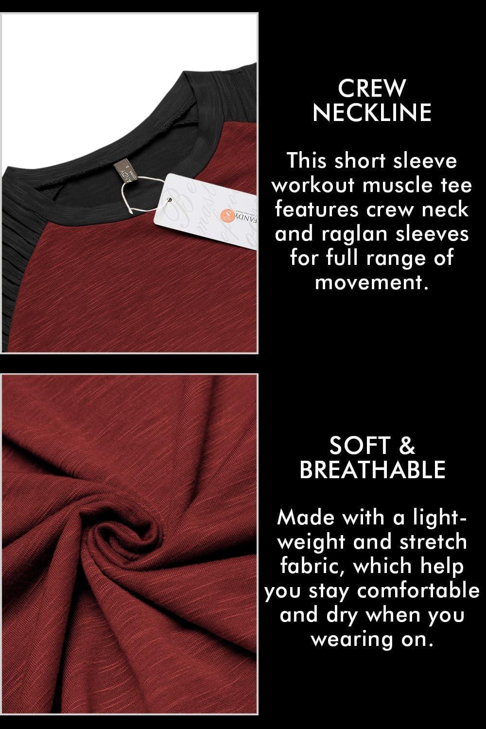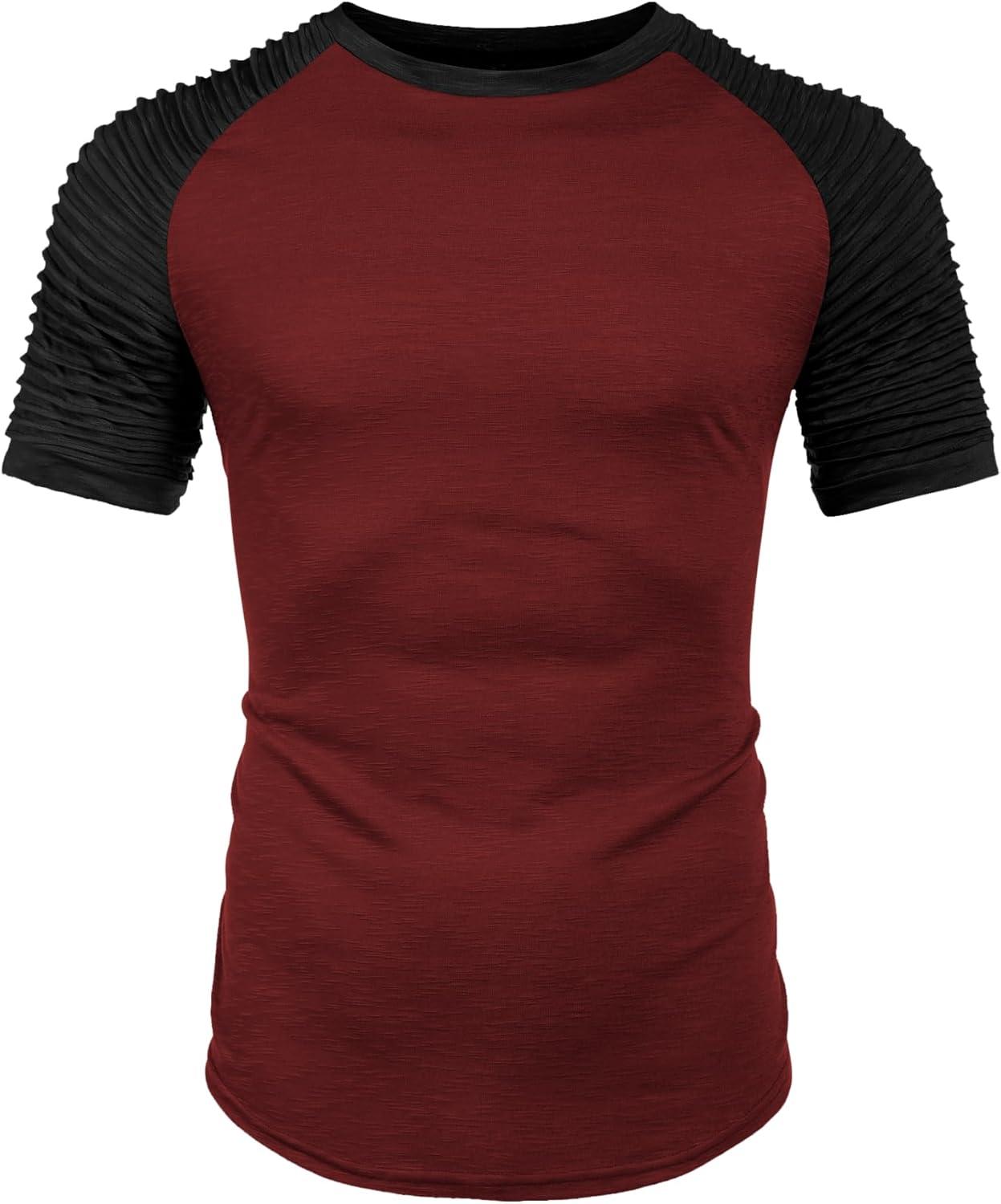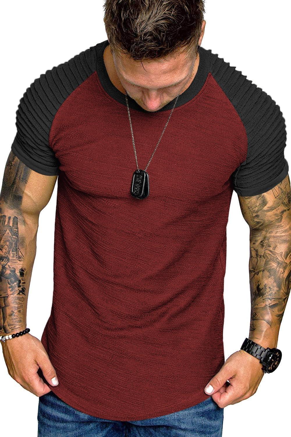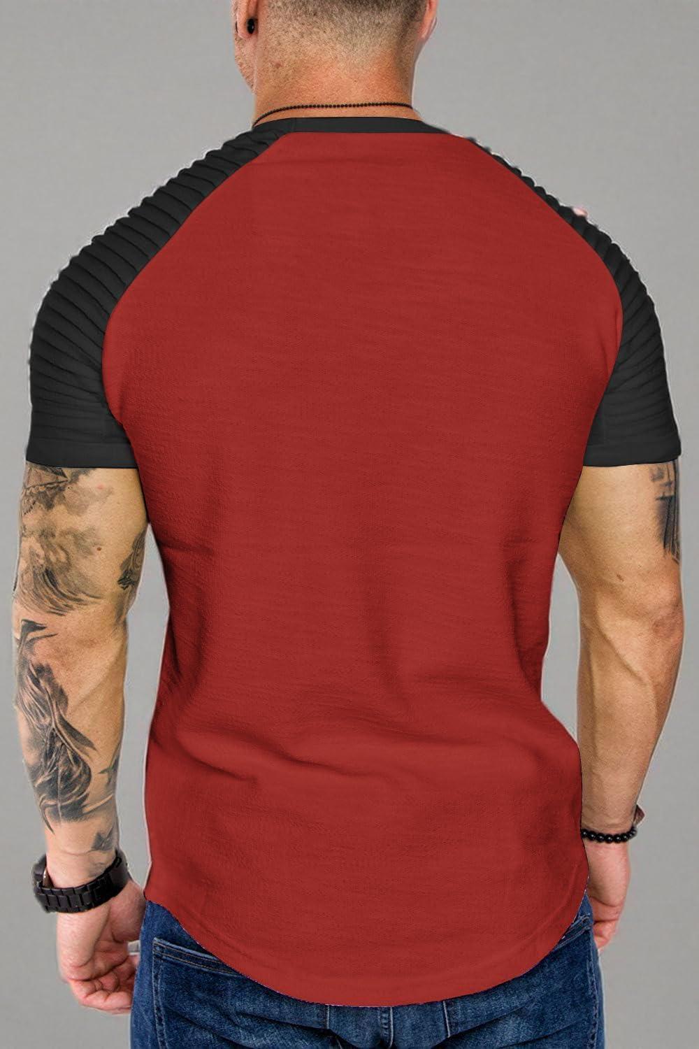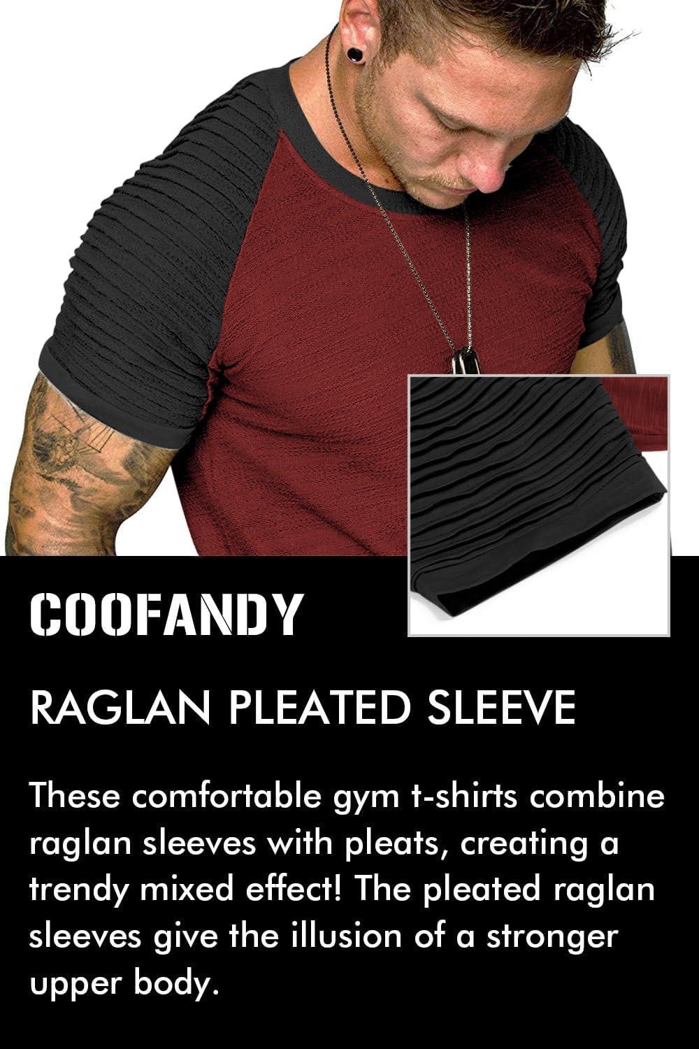 COOFANDY Men's Muscle T-Shirt Pleated Raglan Sleeve Bodybuilding Gym Tee Short Sleeve Fashion Workout Shirts Hipster Shirt(Pattern9 (Red & Black))