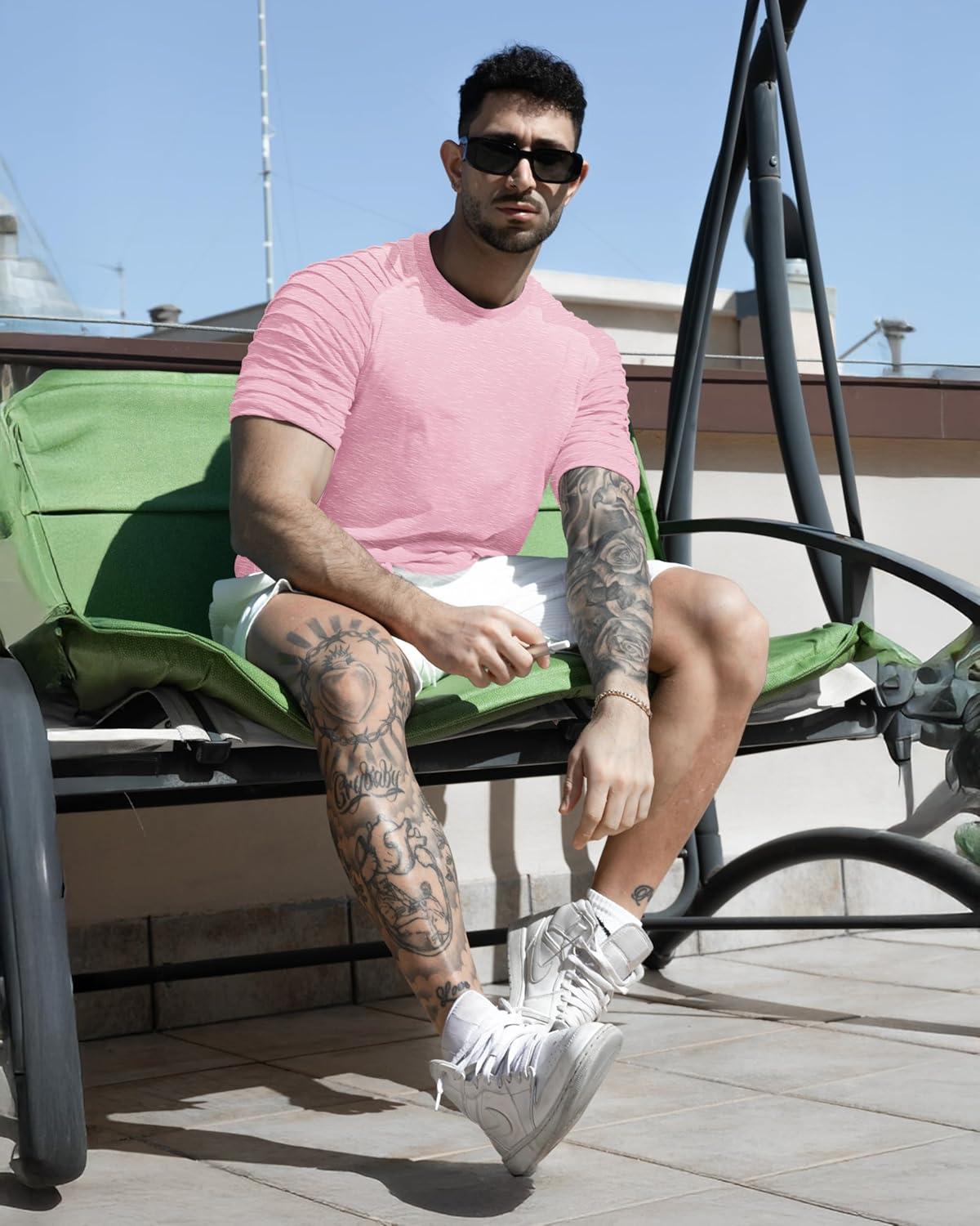 Get your hands on our exclusive COOFANDY Men’s Muscle T-Shirt Pleated Raglan Sleeve Bodybuilding Gym Tee Short Sleeve Fashion Workout Shirts Hipster Shirt(Pink) collection, now at a discounted price.
