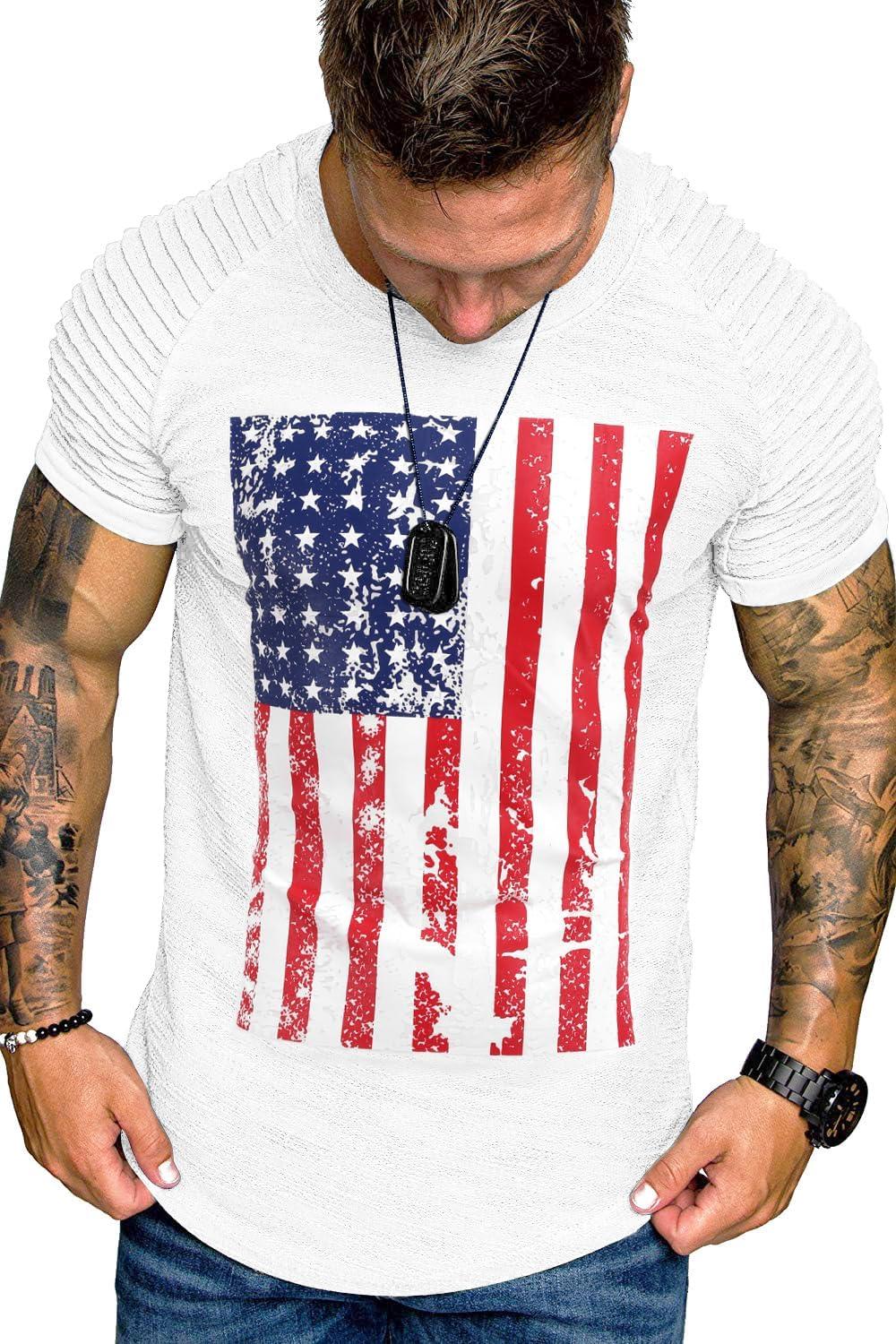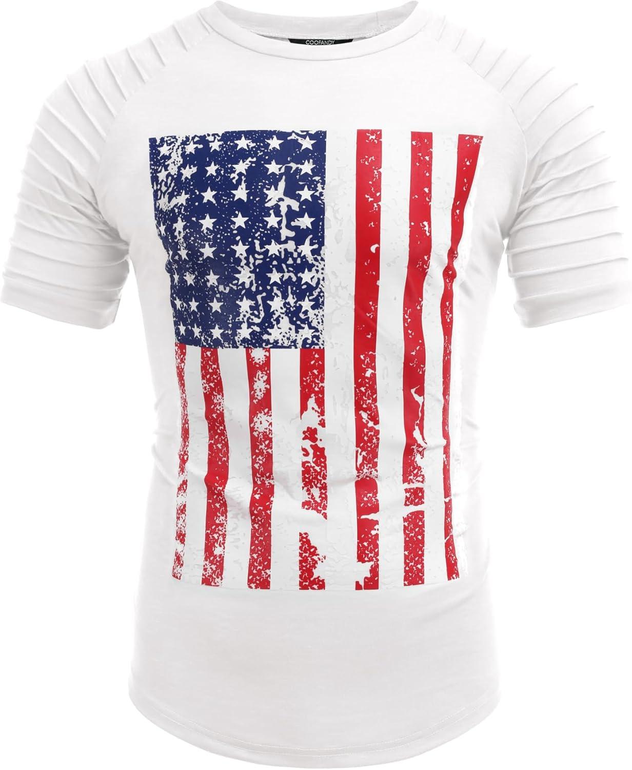 COOFANDY Men's Muscle T-Shirt Pleated Raglan Sleeve Bodybuilding Gym Tee Short Sleeve Fashion Workout Shirts Hipster Shirt(White American Flag)