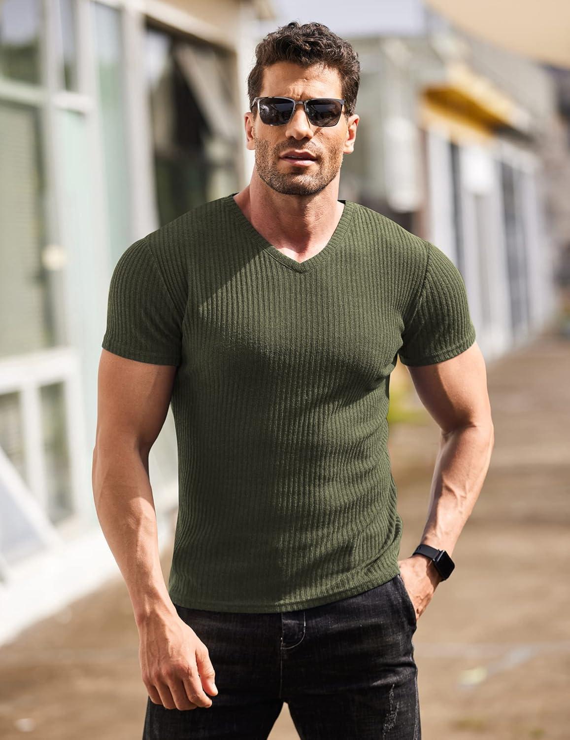 Discover the latest COOFANDY Men’s Muscle T Shirts Stretch Short Sleeve V Neck Bodybuilding Workout Tee Shirts Ribbed Knit Shirt(Army Green) from and take advantage of our limited-time introductory offer.