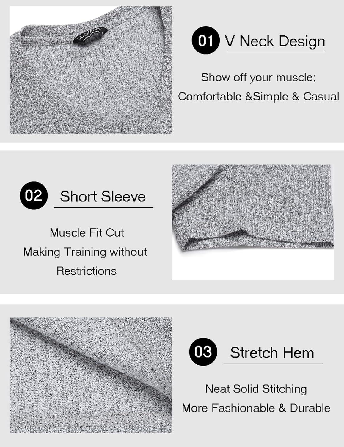 imageCOOFANDY Mens Muscle T Shirts Stretch Short Sleeve V Neck Bodybuilding Workout Tee Shirts Ribbed Knit ShirtGrey