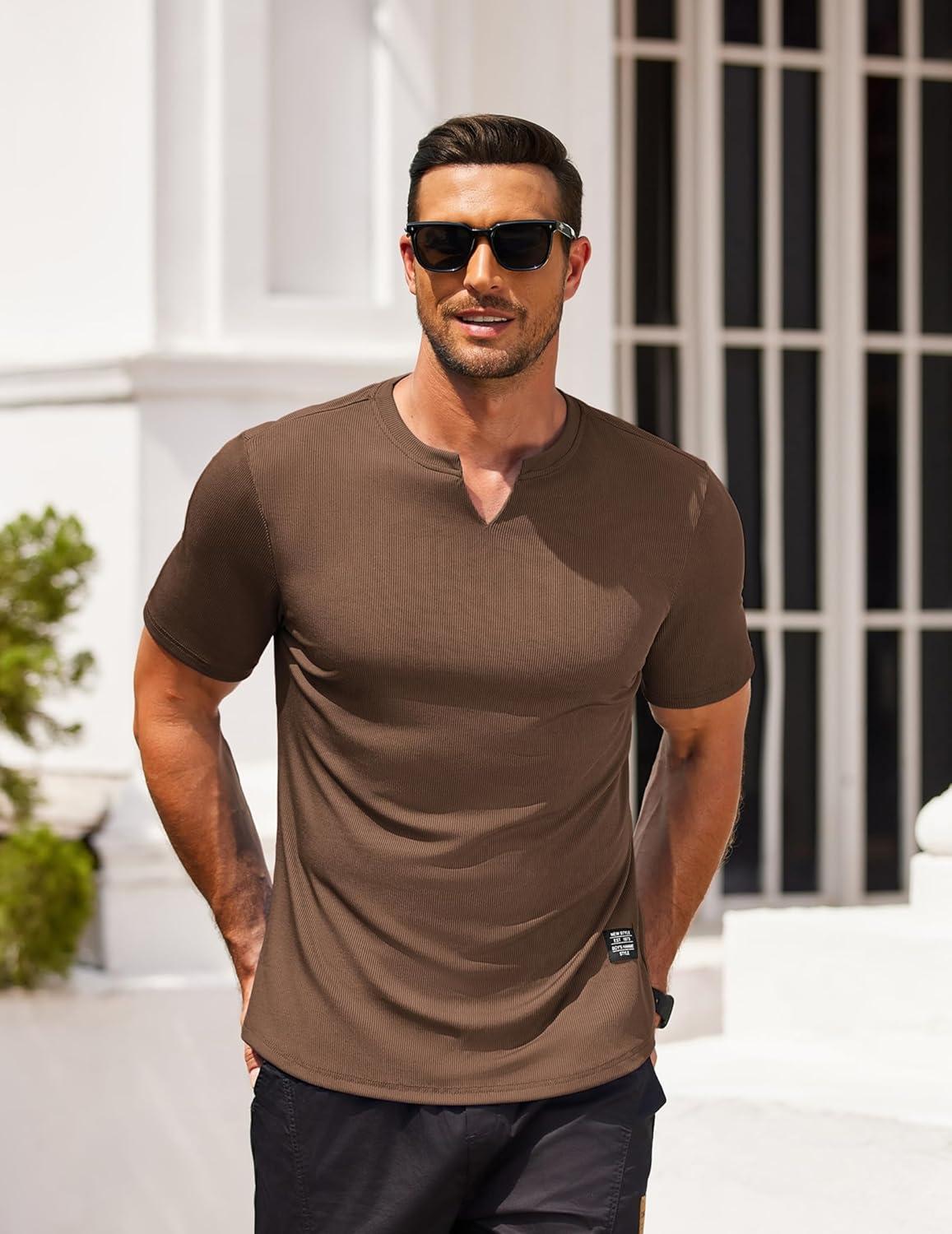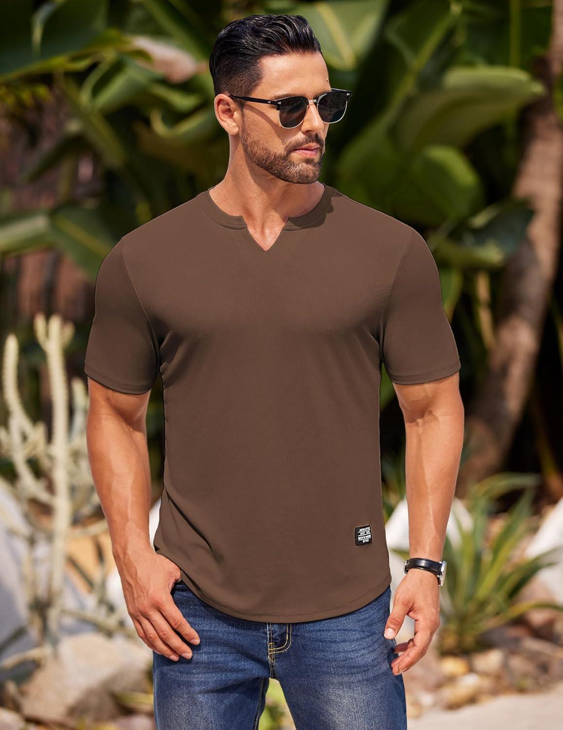 Save big on COOFANDY Mens Muscle T-Shirts V-Neck Slim Fit Workout Shirt Short Sleeve Longline Gym Athletic Tee Shirts(Brown) during our summer blowout sale. Limited quantities available.