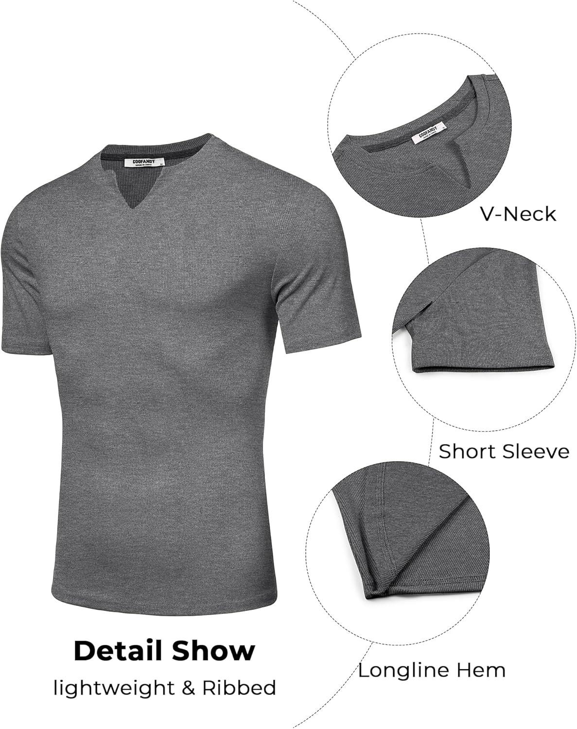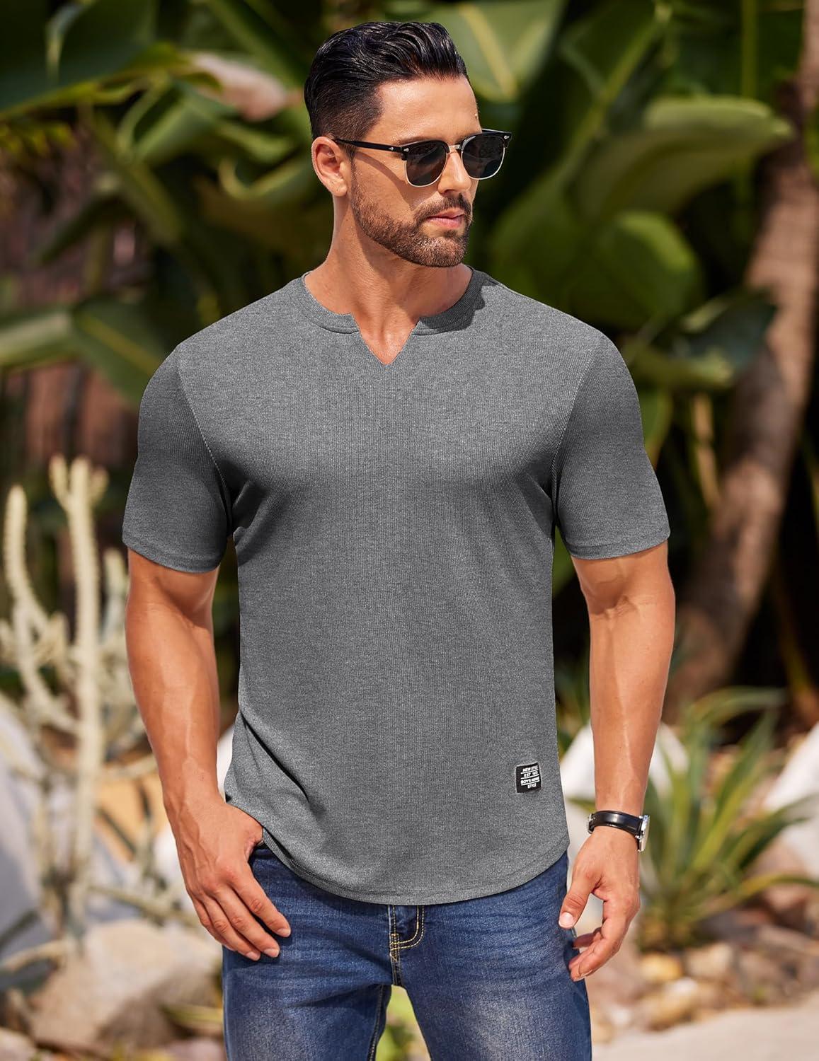 COOFANDY Mens Muscle T-Shirts V-Neck Slim Fit Workout Shirt Short Sleeve Longline Gym Athletic Tee Shirts(Grey)