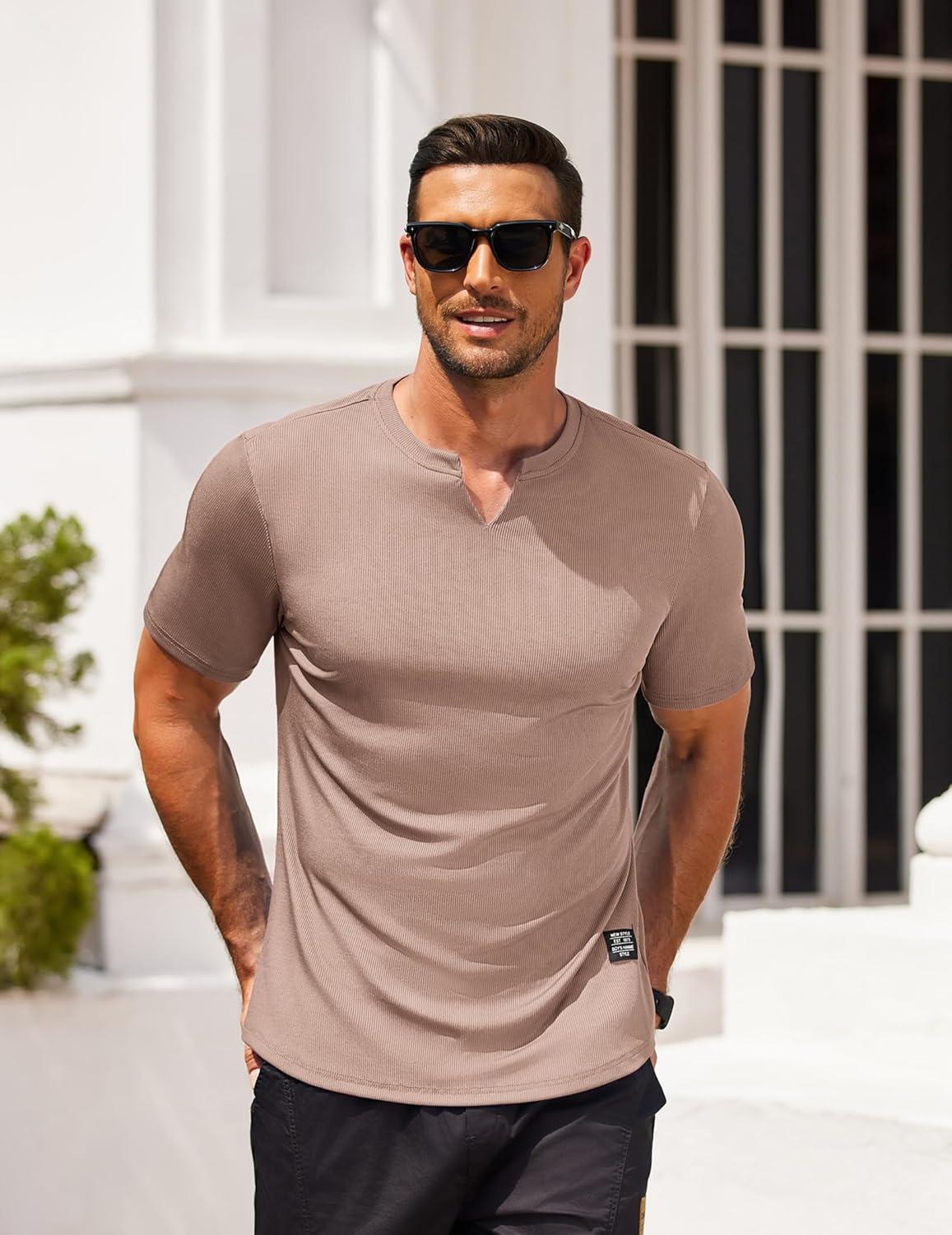 Get the COOFANDY Mens Muscle T-Shirts V-Neck Slim Fit Workout Shirt Short Sleeve Longline Gym Athletic Tee Shirts(Khaki) you want at a discounted price during our markdown sale event.